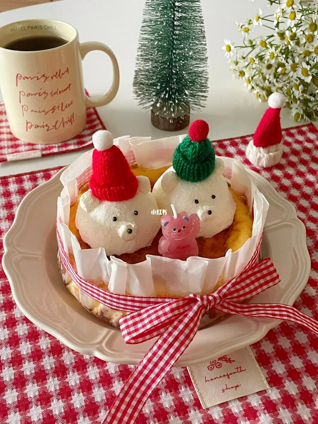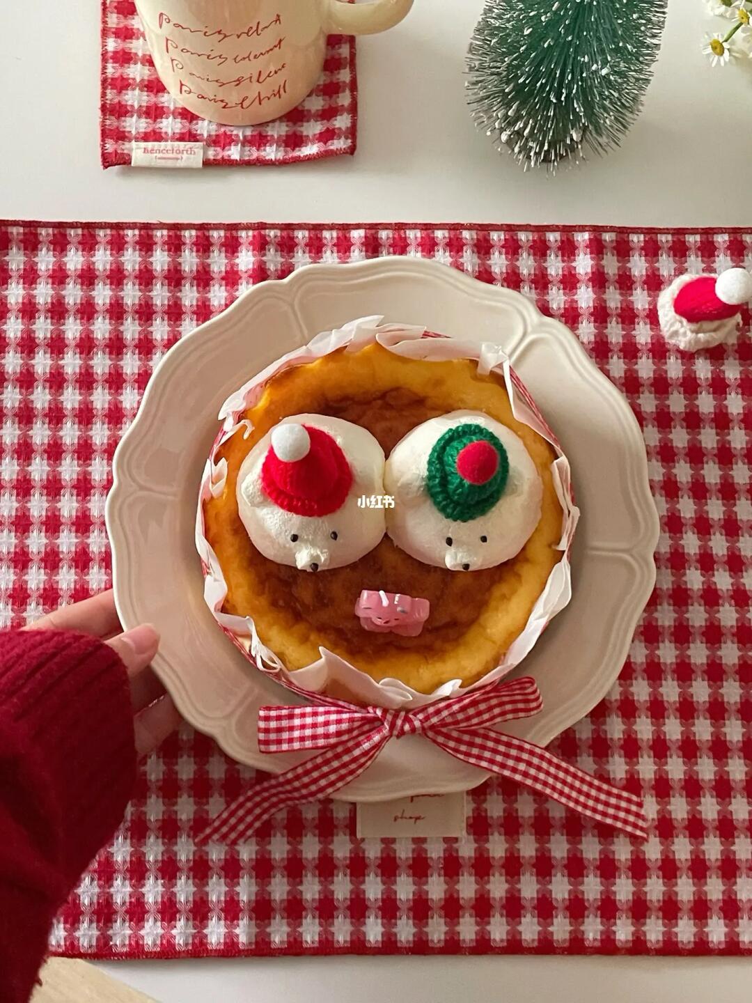 在家做圣诞甜品🎄可爱熊熊🧸原味巴斯克🍰