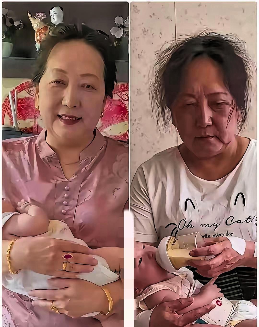 笑不活了!奶奶带娃前后的颜值对比图刷爆全网,这“断崖式暴跌”也太真实了! 左