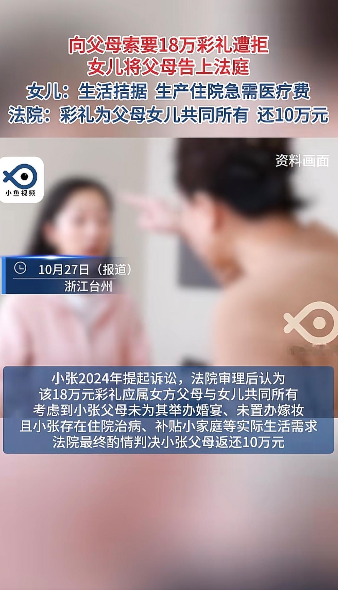 第一次见女儿告父母要彩礼的,彩礼不应该给女儿吗?为啥父母要拿着,真是卖女儿了啊!