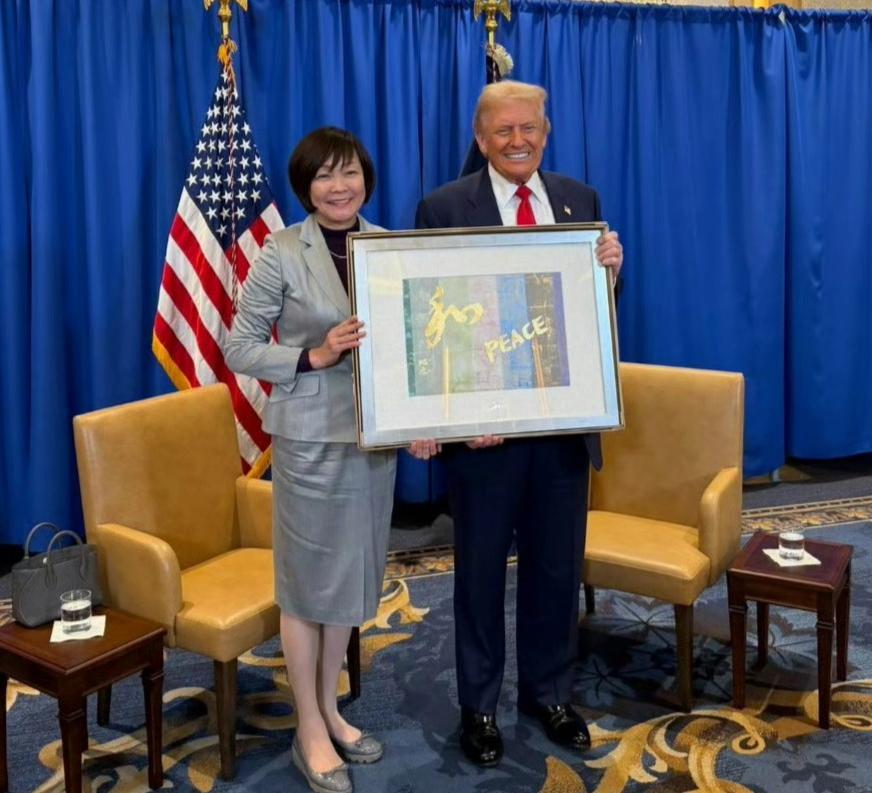 “和平缔造者”?这马屁拍的舒心,还是安倍遗孀懂他,投其所好。 特朗普一直把自己塑造成为和平使者,认为自己应该得诺贝尔和平奖。日本前首相安倍晋三的夫人安倍昭惠向当时的总统特朗普赠送了一份亲手制作的礼物。 高市早苗送了已故师父安倍晋三的遗物给他。
