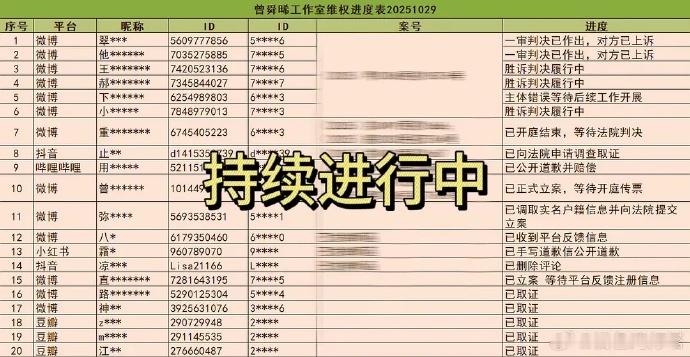 曾舜晞工作室维权表,有好几个眼熟的号