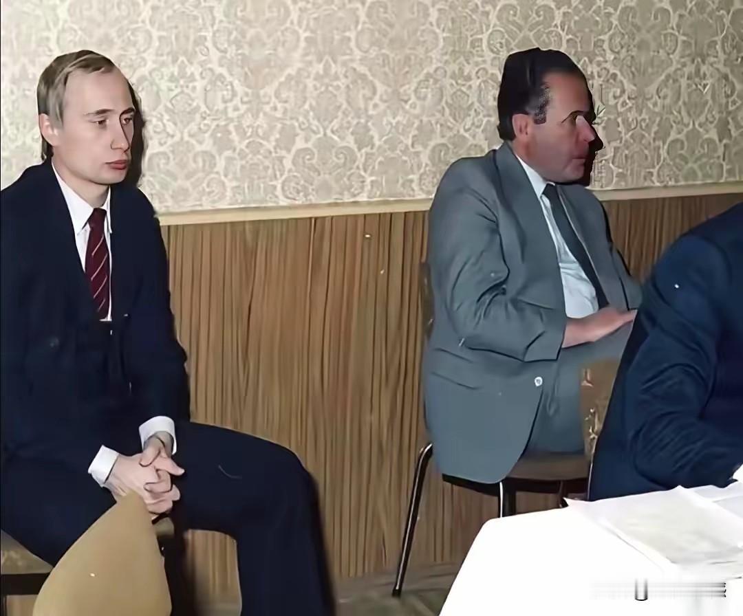 普京年轻的时候,身材是很瘦的,一个人坐在角落里,静静的在思考着什么,脸上棱角分明,两手交叉握在一起,显得特别的冷静,特别的镇定,这种冷静和镇定,仿佛已经超越了他的年龄,在这个年纪当中是少有的,这种超强的心理素质通过外在的形象能够感受到一些!