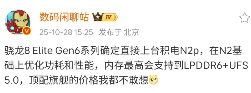 这还没完,随着明年骁龙8Gen6 Elite切入到2纳米工艺(Gen6 Elite直接上N2p工艺)。成本又直线上升,上升到很多标准版都不会用骁龙8Elite Gen6,转而使用低一级的骁龙8Gen6,这种定位有点像苹果的规划。