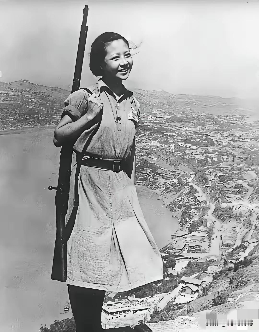 抗日女孩背着长枪,站在了山巅之上,英姿飒爽,形成了一道独特的风景。细端详这个女孩,感觉特别的质朴,特别的大方得体,长得特别的漂亮,气质也非常的好,这应该是80年前拍摄的照片,不知道当年的这个女孩现在是否还健在,如果健在的话,年龄恐怕要超过100岁了!向抗日的优秀的华夏儿女致敬!