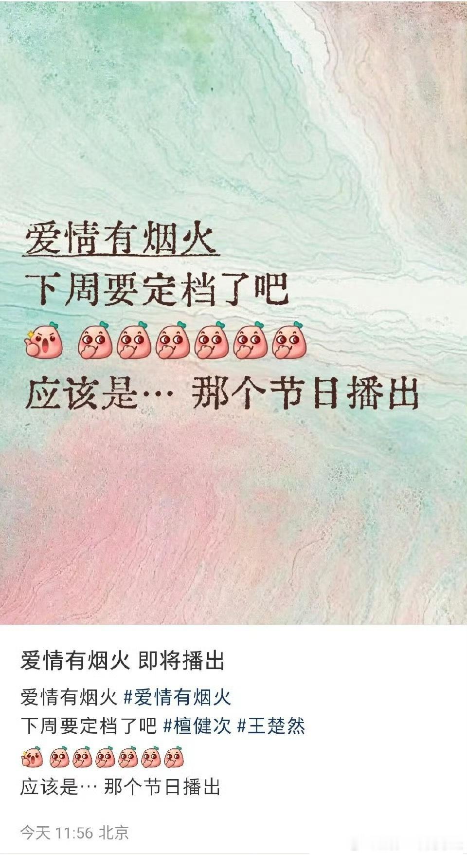 檀健次王楚然爱情有烟火下周定档播出?11月有什么节日