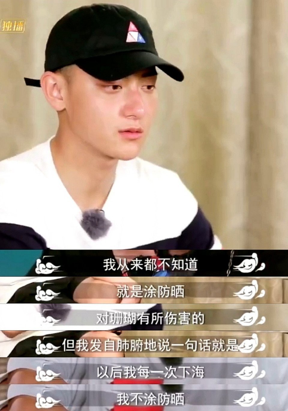 徐志胜说黄子韬保护珊瑚不涂防晒 黄子韬晒黑的一大原因就是老去海边玩但不涂防晒,因为怕伤害珊瑚🪸,所以决定以后下海都不涂防晒!海角88号