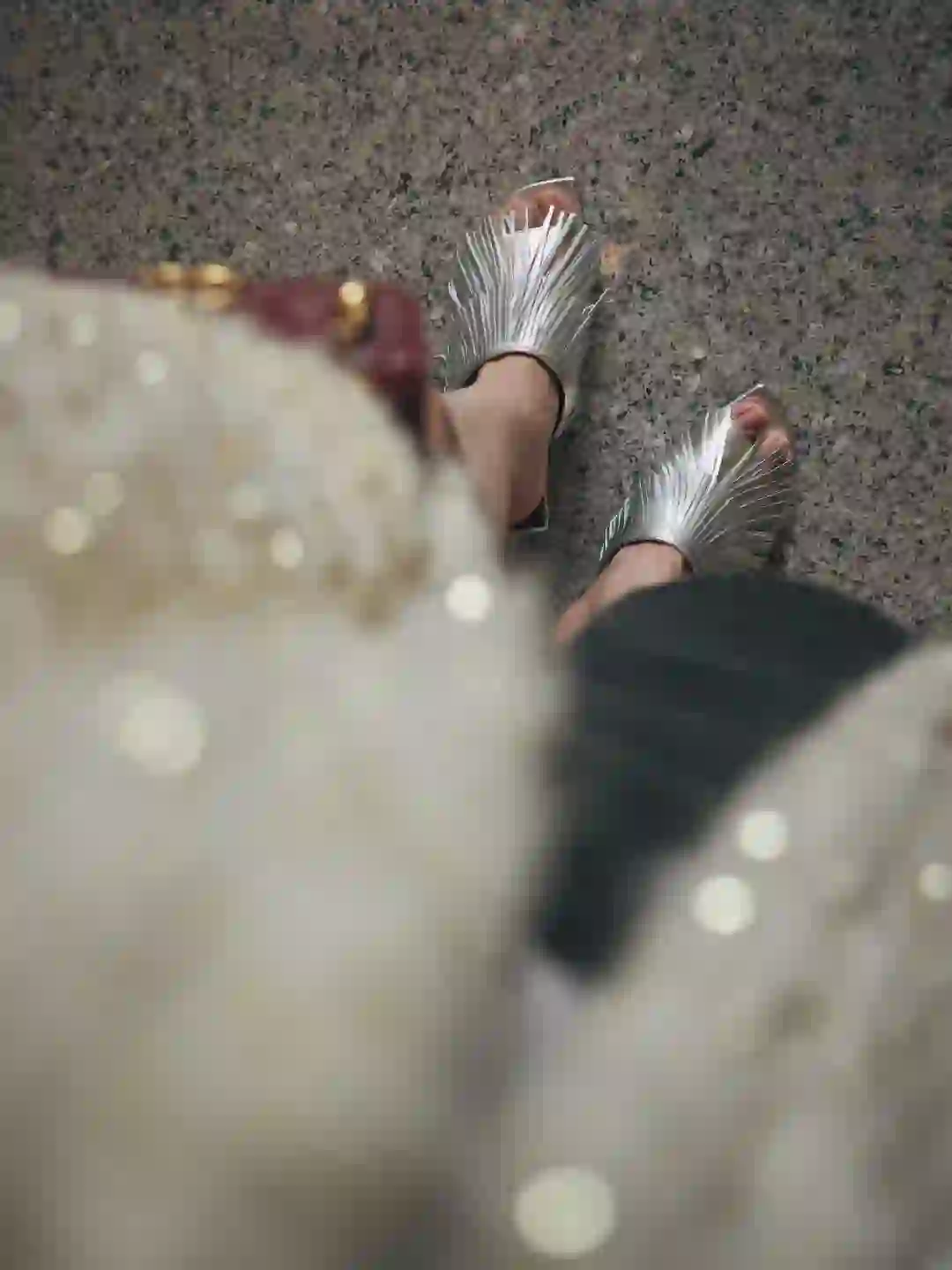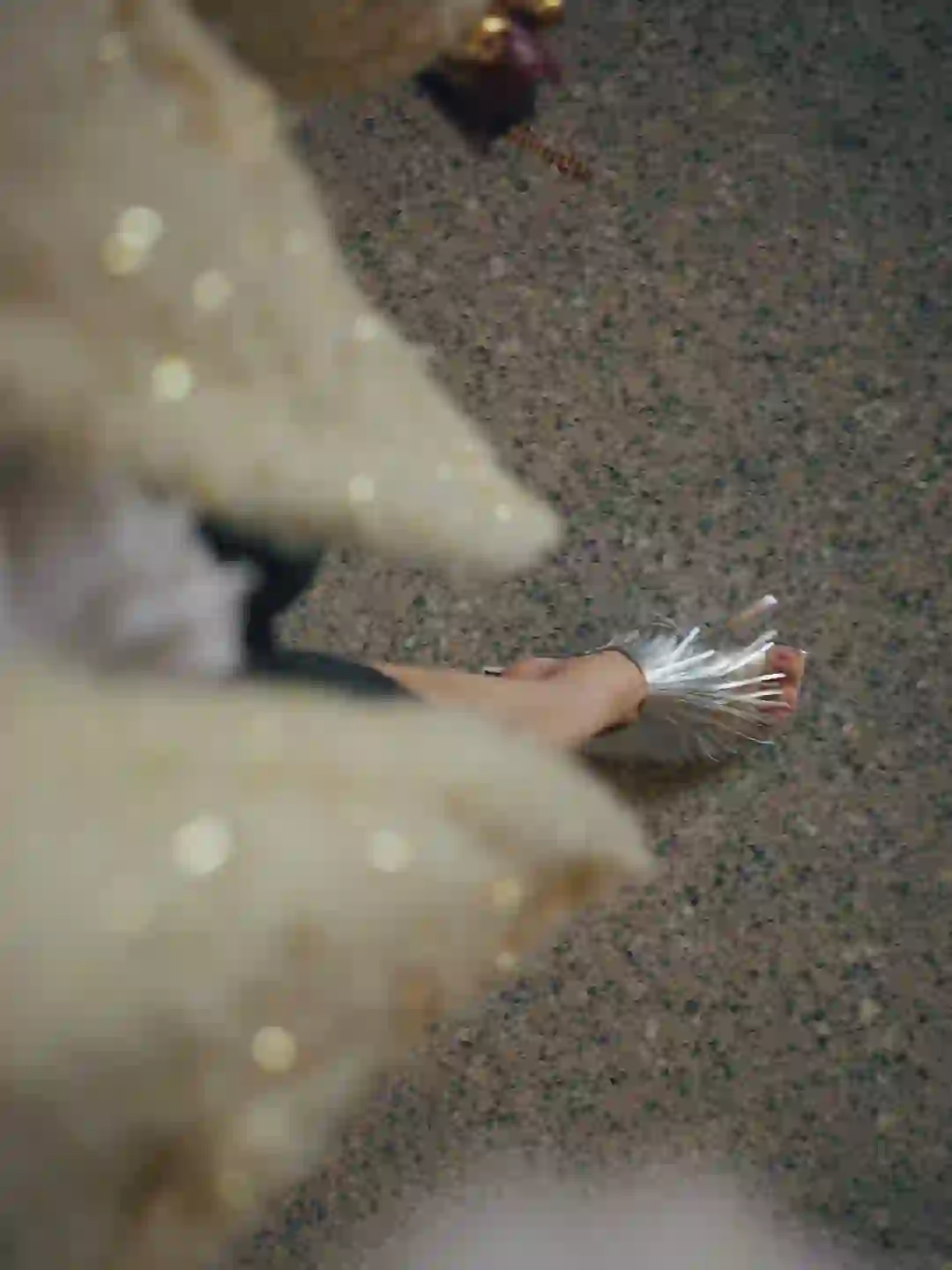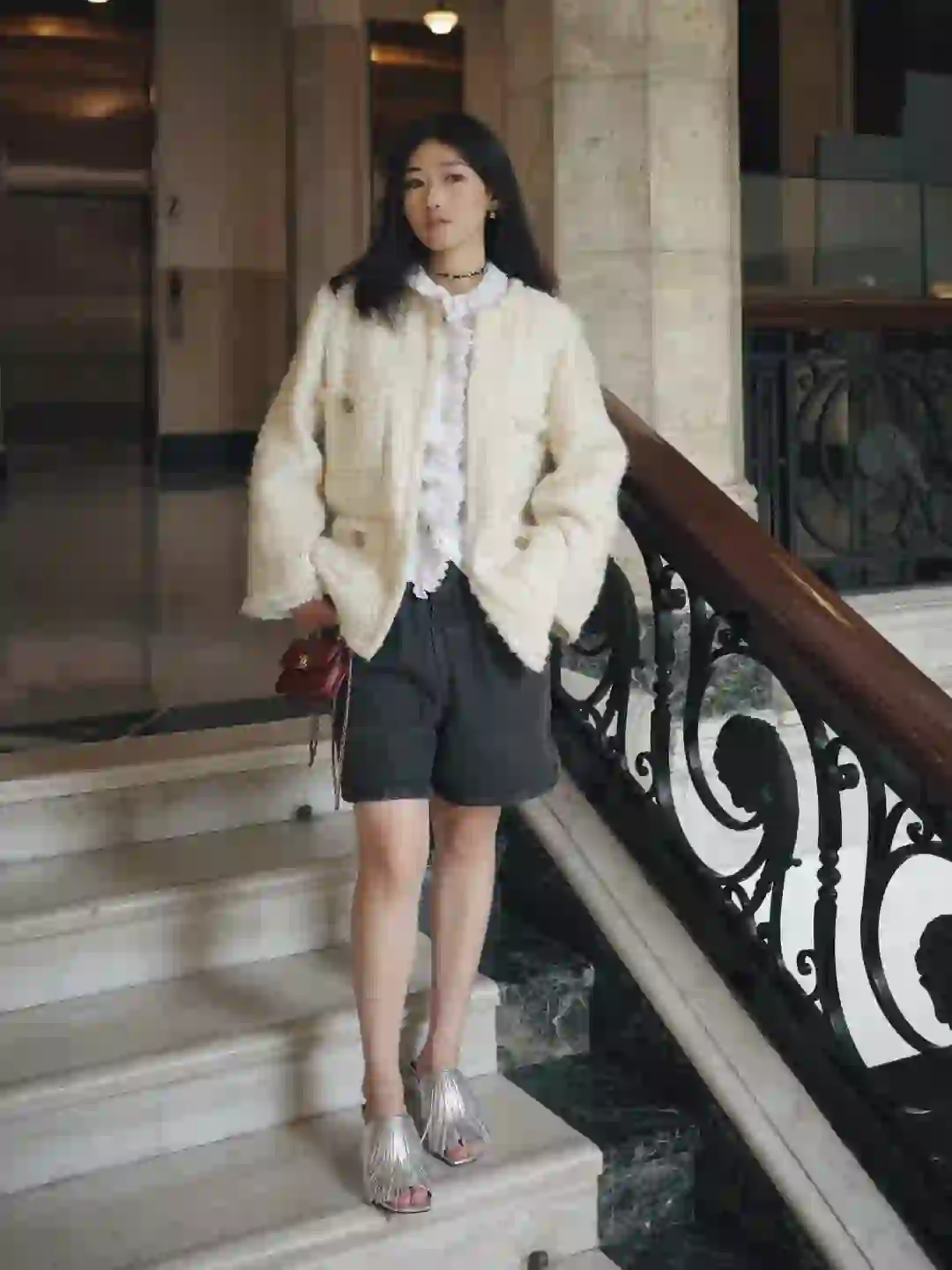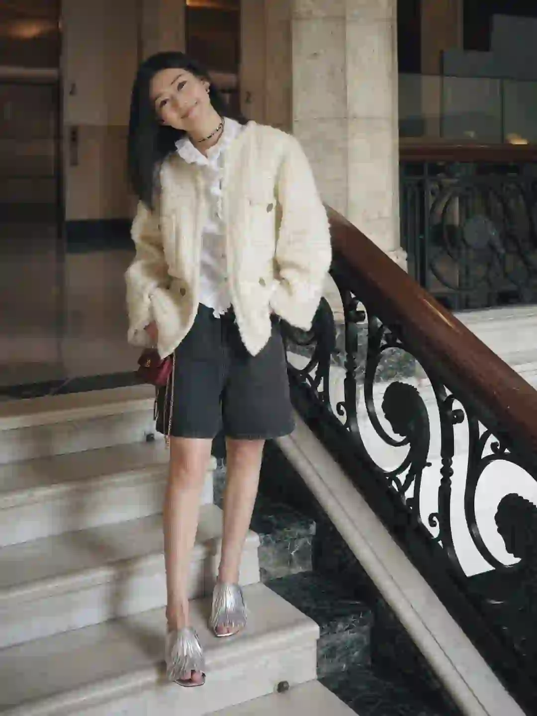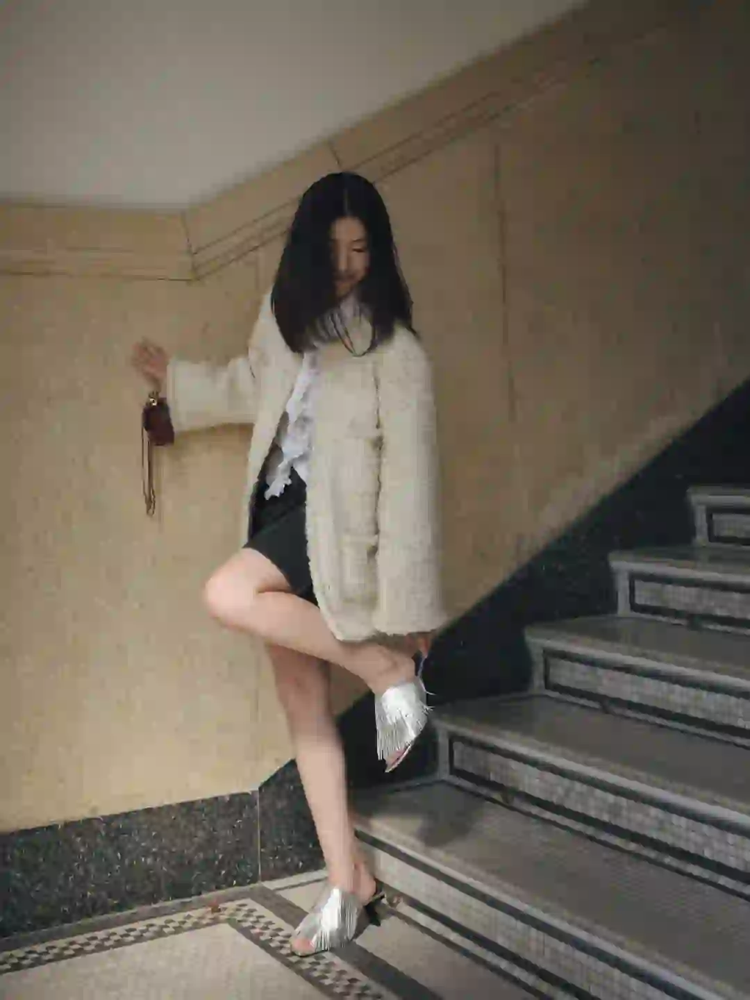 🌟圣诞节、跨年、年会, 爱过节的人已经开始期待12月了! ✨白金外套和银色流苏穆勒, 太有节日氛围! 但作为i人也不想过于张扬隆重, 搭配了比较chill的牛仔中裤, 来平衡一下整体的vibe~ ✨OOTD: 🧥:Chanel 👠:Stella Luna银色流苏穆勒鞋 走起来一点都不累的一双小高跟, 日常搭配轻通勤也可穿!