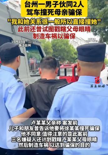 浙江台州,10月27日,44岁女子车祸住院,其23岁儿子偷走她身份证和银行卡,把她保险理赔的312300元全部转走给其同伙。之后又和2个同伙商议把母亲眼睛戳瞎制造交通事故,骗取保险理赔。 未果后竟把母亲骗到路边,让其同伙开车撞死母亲。女子丈夫说出的1个真相,却让人不寒而栗! 2024 年 4 月 30 日,台州市中级人民法院庭审现场一片寂静。 旁听席突然传来一声怒斥:“卢某某他爸!你早知道要出事,为啥不拦着!” 卢父猛地抬头,脸色惨白,双手紧紧攥着衣角,一句话也说不出。 被告席上,23 岁的卢某某低着头,不敢看旁听席的亲属。 这场庭审,揭开的不仅是弑母骗保的真相,还有一个父亲的沉默之罪。 时间回到 2023 年 4 月,浙江台州椒江的一条马路上。 徐某某骑着电动车去菜市场,一辆电动车突然从侧面撞来。 她摔倒在地,膝盖和手臂擦破了皮,去医院检查后确诊轻微骨裂。 处理事故时,保险公司工作人员提到 “可申请意外理赔”。 这话被来医院探望的卢某某听在耳里,眼神悄悄变了。 徐某某住院期间,卢某某每天都来,却总围着 “理赔” 话题转。 “妈,理赔能拿到多少钱?到时候放我卡上,我帮你存着。” 徐某某觉得儿子贴心,没多想就答应了,还把银行卡密码告诉了他。 6 月,312300 元理赔金到账,卢某某当天就约了杨某某吃饭。 饭桌上,他把手机里的转账记录给杨某某看:“这钱,咱们得好好用。 ” 接下来的一个月,两人的消费记录荒唐得惊人。 卢某某先花 2 万租了辆凯迪拉克,每天开着去 KTV 唱歌。 杨某某则用徐某某的身份证,办了三张信用卡套现。 他们还去高档商场买名牌鞋,一双就花了 8000 多。 徐某某发现银行卡余额不对时,31 万已经只剩不到 5000 元。 “钱去哪了?” 徐某某质问儿子,卢某某只说 “投资亏了”,躲了出去。 没钱后,杨某某开始在网上搜 “怎么骗保来钱快”。 他把 “车祸致死理赔更高” 的截图发给卢某某,还加了句 “你妈上次已经赔过,再出事更像意外”。 卢某某没反对,反而问 “怎么弄才不会被怀疑”。 2023 年 9 月 30 日,卢某某以 “中秋去外婆家,顺路带你买件新衣服” 为由,骗徐某某出门。 徐某某还挺高兴,特意换了件干净的外套,跟着儿子上了电动车。 卢某某把车骑到没有监控的乡间小路,停在路南侧。 “妈,你在这等我,我去前面便利店买瓶水。” 他说完就往北侧走。 徐某某站在原地,看着儿子的背影,没发现杨某某的车正从远处开来。 76 公里的时速,凯迪拉克的车头直接撞向徐某某。 她像片叶子一样被撞飞,落在路边的田里,没了动静。 卢某某在北侧看着,等杨某某开车绕回来,才一起离开。 第二天,卢某某假装发现母亲 “被车撞”,打电话报警。 他在医院哭着办理后事,还不忘向保险公司申请 “意外理赔”。 破绽出在卢某某的手机里。 保险公司核查时,发现他和杨某某的聊天记录有问题。 卢某某手机里有杨某某发的 “删聊天记录”,杨某某手机里却没有。 工作人员还发现,卢某某在母亲去世前,借了好几笔小额贷款。 这些疑点让保险公司立刻报警,警方很快锁定了三人。 审讯时,卢某某没撑多久就招了,把所有事情都交代了。 2024 年 4 月 30 日,法院的判决下来了。 杨某某和卢某某因故意杀人罪、盗窃罪被判死刑,程某判 7 年。 卢父虽然没直接参与杀人,但因包庇被罚款 2 万元。 徐某某的亲属拿到判决书时,哭着说:“总算给她讨回公道了。” 如今,卢某某和杨某某正在等待死刑执行,程某在监狱服刑。 卢父则被亲戚们疏远,一个人住在狭小的出租屋,每天面对空荡荡的房间。 这起案件留下的,是太多无法弥补的遗憾。 徐某某到死都不知道,自己疼爱的儿子,会为了钱杀了她。 卢父的沉默,成了一辈子的愧疚,也成了别人眼中的 “帮凶”。 三个年轻人,本该有自己的人生,却被金钱欲望毁了一切。 网友说:“亲情在钱面前碎得稀烂,这样的悲剧,再也别发生了。” 而更多人在反思,如何让家庭温暖不被欲望吞噬,如何让价值观不偏离正轨 —— 这才是案件留给所有人的警示。 信源:潇湘晨报——23岁男子伙同2人撞死母亲骗保,更多细节披露:父亲、母亲、爷爷都被...