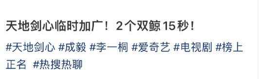 天地剑心临时加广了,品牌为成毅王权富贵而来,谁懂我们成毅王权富贵的出圈度和热度啊,期待住今晚万剑穿心名场面的到来了~