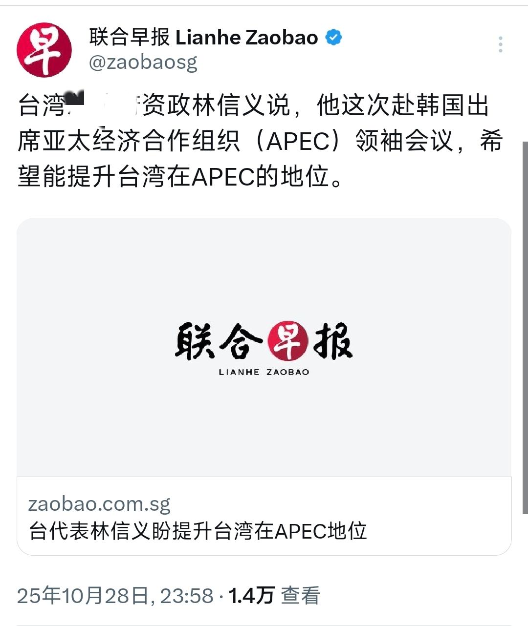 台湾代表林信义表示,他这次赴韩国出席APEC会议,希望能提升台湾在APEC的地位。林信义指出:“跟川普总统,我们永远在争取跟他会面的可能性”。 [机智]评几句:这简单,联合国安理会五个常任理事国之一的中华人民共和国台湾省,地位一定不会低。但是看样子,以经济体的名义参加中华台北,又想故伎重演“借会谋独”。 APEC这个平台,本身就是一个奇特的存在。它不是联合国,不谈主权政治,只聚焦经济合作。正是这种“非政治性”的定位,给了台湾以“中华台北”的名义参与的机会。 这个名称本身,就是一份精心打磨的政治妥协,一个各方心照不宣的安排。多年来,台湾的代表们在这个舞台上,总是小心翼翼地在经济议题和政治红线之间走钢丝。 他们谈供应链、谈数字经济、谈中小企业发展,每一个议题都紧扣经济,但每一次亮相,又何尝不是在争取国际能见度,为所谓的“地位”添砖加瓦。 林信义口中的“提升地位”,具体是什么?是希望在领导人非正式会议上能有更靠前的座位?还是能在更多的议题小组中拥有主导权?或许都有。 但更深层次的,恐怕是希望将这种经济上的存在感,潜移默化地转化为一种政治上的“事实存在”。这就好比参加一个派对,你的目的不仅仅是品尝美食,更是希望让更多重要人物认识你、记住你,甚至与你建立某种私人联系。 这种操作,被一些人解读为“借会谋独”,认为是在利用国际场合的模糊空间,进行政治试探。 而提到争取与特朗普会面,这更是将这种试探推向了高潮。特朗普执政时期,其特立独行的风格和对传统外交规则的漠视,一度让一些人看到了“机会”。 对于台湾的代表而言,与美国总统,哪怕是前总统的一次握手、一次短暂交谈,其象征意义都无可估量。 这不仅仅是一次简单的互动,更像是一张可以向内展示、向外宣示的“成绩单”,证明自己有能力触及国际权力的核心圈层。 然而,这种会面的可能性,从来都不是由单方面意愿决定的。它背后牵动着中美关系的宏大格局,牵动着那个绕不开的“一个中国”原则。就像一场精密的棋局,每一步都可能引发连锁反应,稍有不慎,满盘皆输。 在国际政治的现实框架中,联合国安理会五个常任理事国之一的中华人民共和国,其对台湾的主权立场是清晰且一贯的。 这意味着,无论台湾以何种名义、在何种场合出现,其“天花板”早已被设定。所谓的“地位”,在这个框架下,更多是一种技术性处理,而非政治性承认。 台湾省作为中国的一部分,其经济发展和民生福祉自然是国家整体规划的一部分,从这个角度看,其地位又何尝会低? 这种看似矛盾的说法,恰恰反映了台湾在国际参与中所面临的困境:一边是经济上渴望融入区域、贡献力量的现实需求,另一边是政治上试图突破现有框架的冲动。 于是,APEC的会场内外,就上演了一幕幕耐人寻味的场景。代表们在走廊里“偶遇”,在茶歇时交谈,每一次看似不经意的互动,都可能被外界解读为某种政治信号。 媒体的长枪短炮紧紧跟随,捕捉着每一个微表情、每一句可能被放大解读的话语。这就像一场大型的外交真人秀,每个参与者都清楚规则,但又都试图在规则的边缘游走,为自己争取最大的利益。 林信义的这番话,究竟是真心实意的愿景,还是说给特定听众听的“场面话”?这种在APEC舞台上的努力,究竟是在为台湾民众争取实实在在的福祉,还是在进行一场希望渺茫的政治赌博? 经济与政治的界限,在现实中真的能那么清晰地划分开吗?或许,每个人心中都有自己的答案。