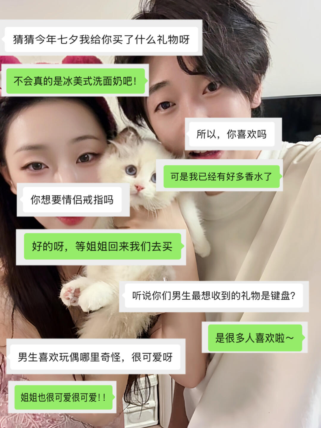 她:猜猜今年七夕我给你买了什么礼物呀~
