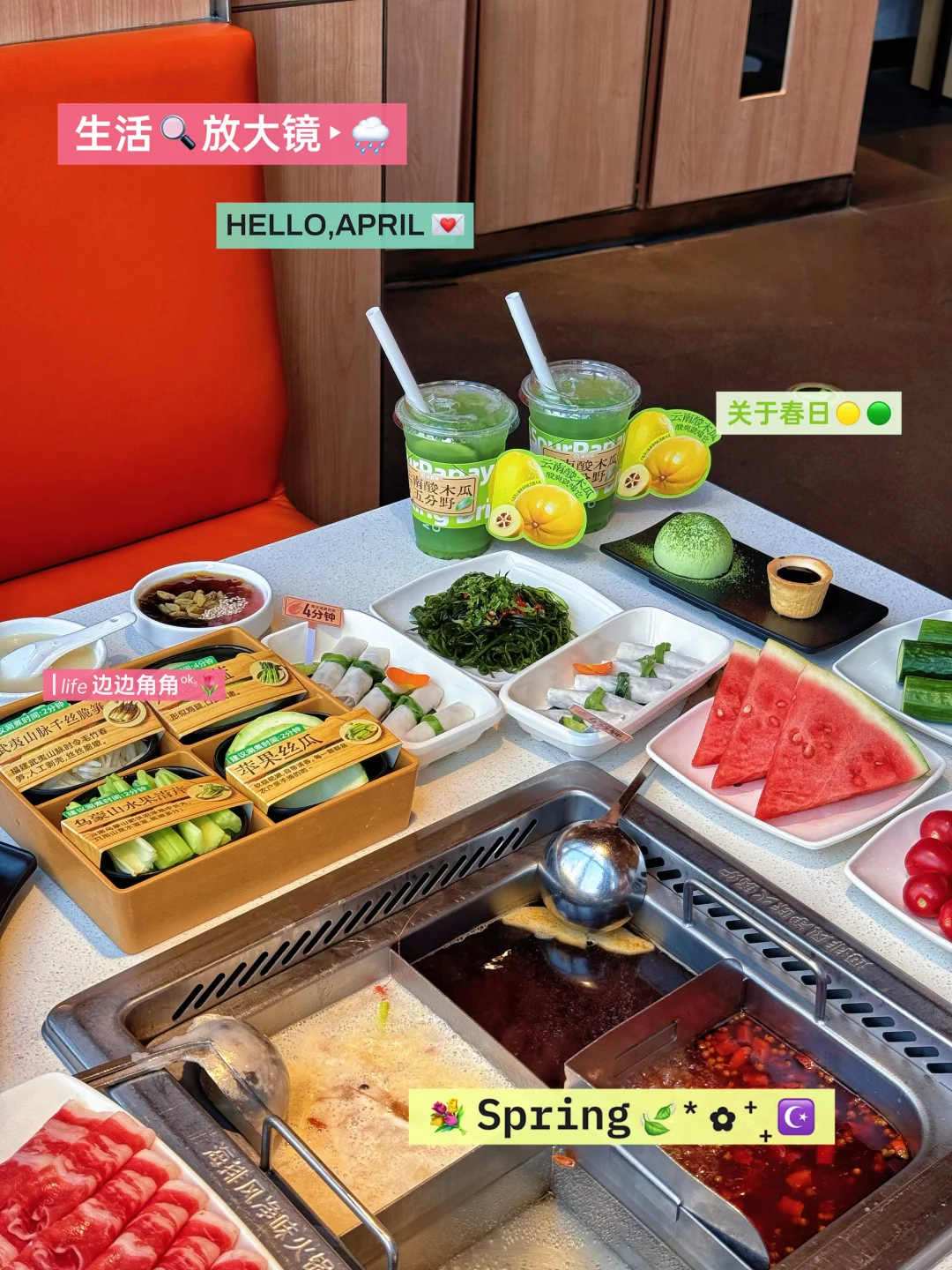 看完电影宝宝肚子饿了,我们去吃了海底捞嘻嘻是春天的第一顿火锅!海底捞春季新品有个云南酸木瓜饮料酸酸的 我女朋友超爱喝!你们可以尝尝!![派对R][派对R][派对R][派对R]