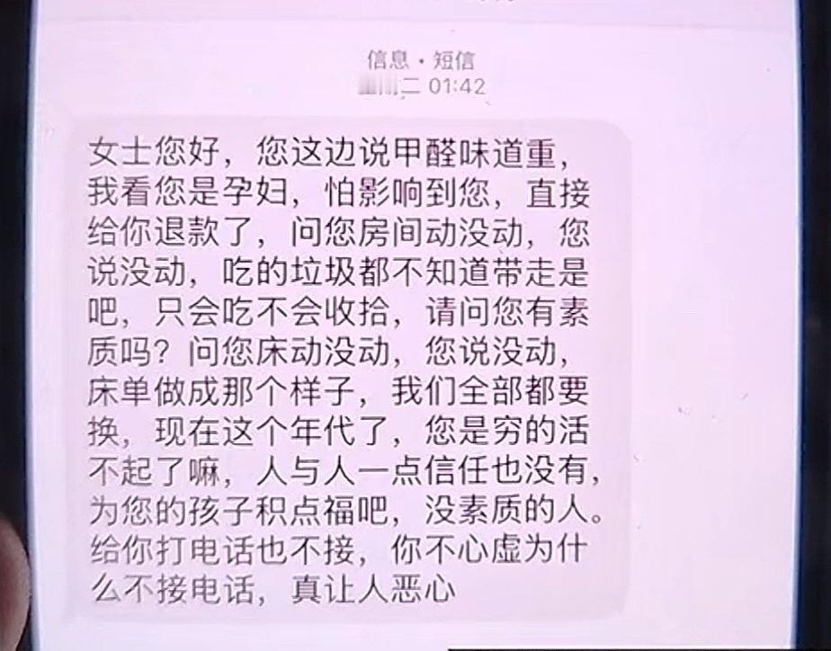 最近有件让人气愤的事儿在杭州闹得沸沸扬扬。一位临产的孕妇和丈夫入住如家商旅酒店,刚进房间就闻到刺鼻的甲醛味,孕妇身体本就敏感,这味道让她实在受不了,夫妻俩当即决定退房。酒店前台倒也爽快,很快就把房费全额退了。可谁能想到,这退房风波刚平息,孕妇丈夫的手机就收到前台员工发来的短信,内容简直不堪入目。短信里指责孕妇在房间里动过床铺、吃过外卖没清理,还质问“孕吐恶心还是房间恶心”,甚至用“真让人恶心”“没素质”“为你的孩子积点福”这些侮辱性言辞攻击孕妇。孕妇丈夫觉得妻子人格受到严重侮辱,多次找酒店沟通,可酒店一直拖着不处理,无奈之下他们只能找媒体曝光。这事儿经媒体一报道,瞬间就炸了锅,网友们纷纷谴责酒店员工的不当行为。最后酒店顶不住舆论压力,辞退了涉事员工,还赔偿了2500元,这事儿才算暂时告一段落。 这事儿看着简单,背后却藏着不少让人深思的问题。从酒店员工的角度看,就算顾客在房间里动了床铺、吃了外卖没清理,这也不是辱骂顾客的理由啊。顾客退房是因为房间有异味,这是酒店自身的问题,员工不反思酒店的服务质量,反而把火撒在顾客身上,这职业素养也太差劲了。而且,顾客是孕妇,身体和心理都处于特殊时期,本就需要更多的关心和照顾,员工却用这么恶毒的语言攻击她,这不仅伤害了孕妇的感情,也违背了基本的道德准则。 再说说酒店,顾客反馈房间有异味,酒店本应该第一时间检查房间,看看是不是甲醛超标或者其他卫生问题,给顾客一个合理的解决方案。可酒店只是简单退了房,没有对房间进行任何处理,也没有对员工进行培训和教育,这才导致后续事情的发生。这说明酒店在管理上存在很大的漏洞,对员工的服务意识和职业道德培养不够重视。 咱们再往大了说,这件事也反映出整个服务行业存在的问题。现在很多服务行业只注重业绩和利润,却忽略了服务质量和顾客体验。员工没有经过专业的培训,缺乏基本的服务意识和职业道德,对待顾客态度冷漠、粗暴,这样的服务怎么能让顾客满意呢? 这件事真的让人很气愤,也给我们敲响了警钟。作为消费者,我们在遇到类似的事情时,一定要勇敢地维护自己的合法权益,不能让不良商家和员工得逞。同时,也希望服务行业能够重视起来,加强对员工的管理和培训,提高服务质量,让顾客真正感受到温暖和尊重。大家对这件事有什么看法呢?快来评论区说说吧! (案例来源:1818黄金眼)
