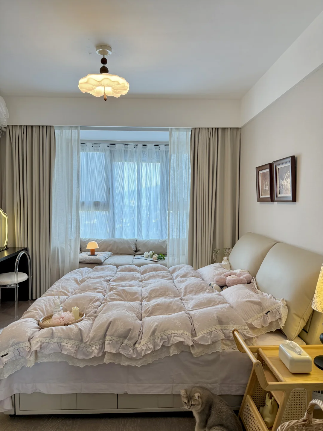 我的卧室面积只有13平 空间虽小,但该有的都有 软乎乎的床铺上了四件套 摆上冰冰凉凉的夹腿抱枕 太适合抱着睡觉啦😴 小猫也已经乖乖躺好在等我了🐈 这样的小家怎么能不爱呢💕