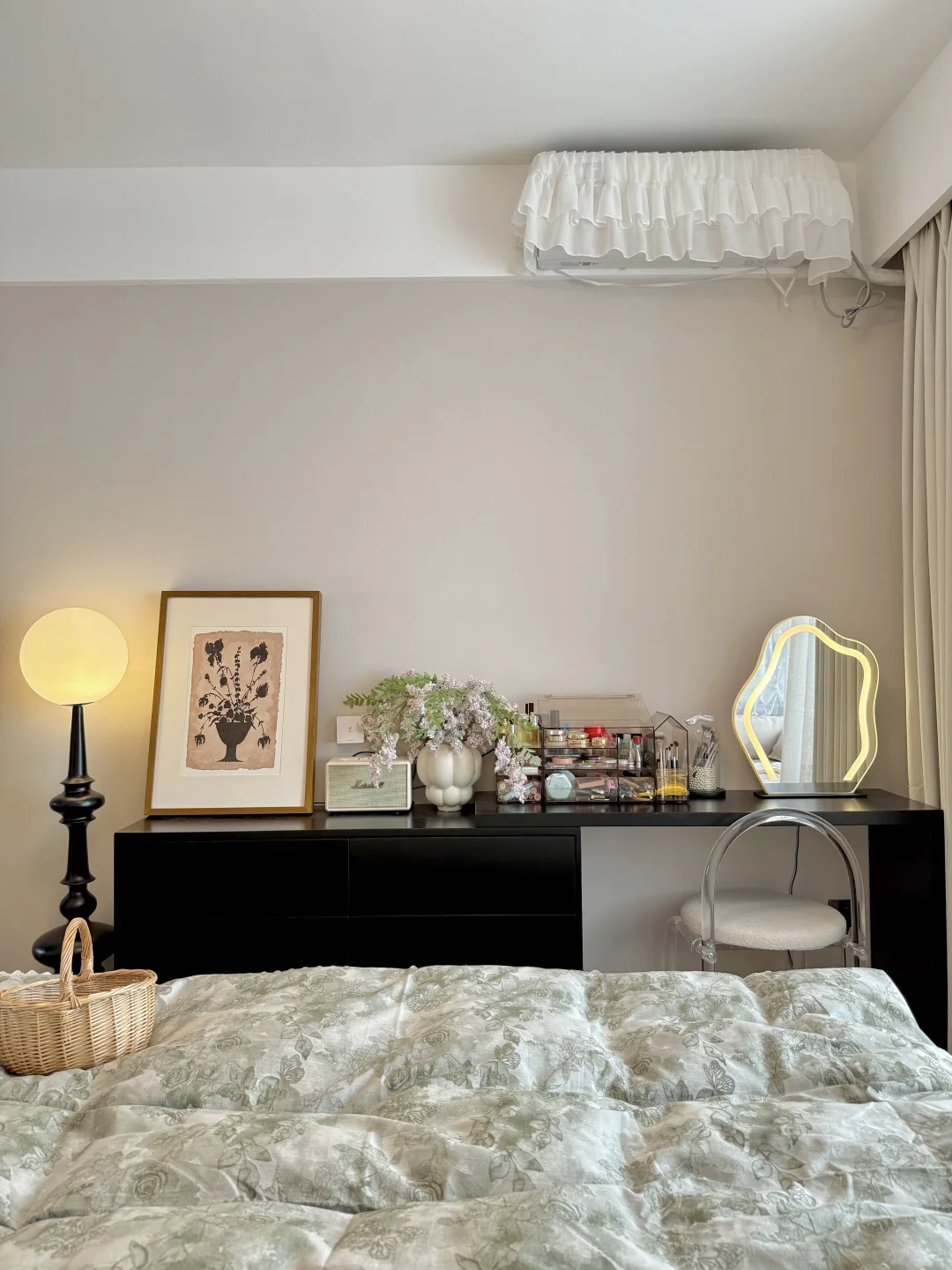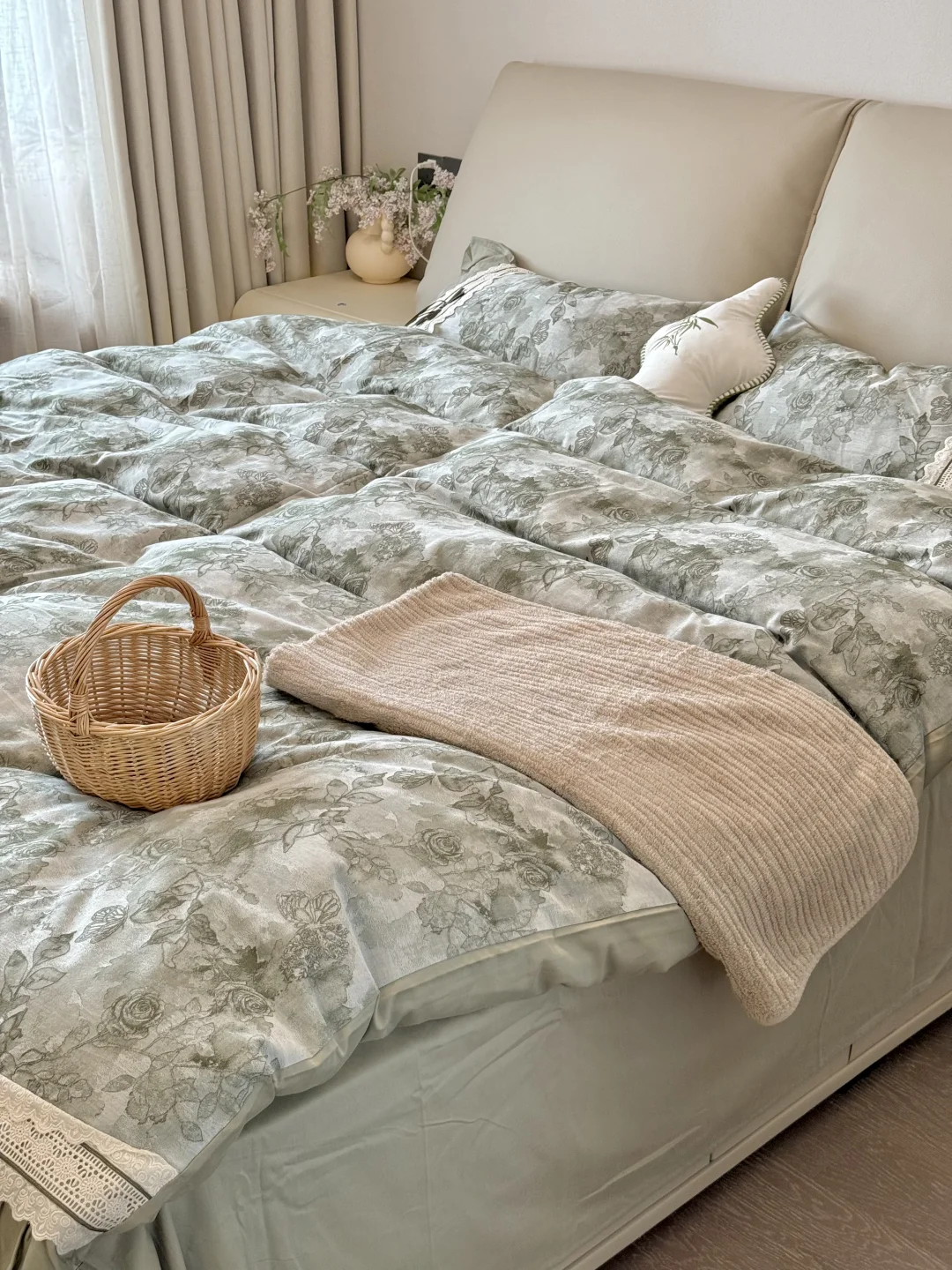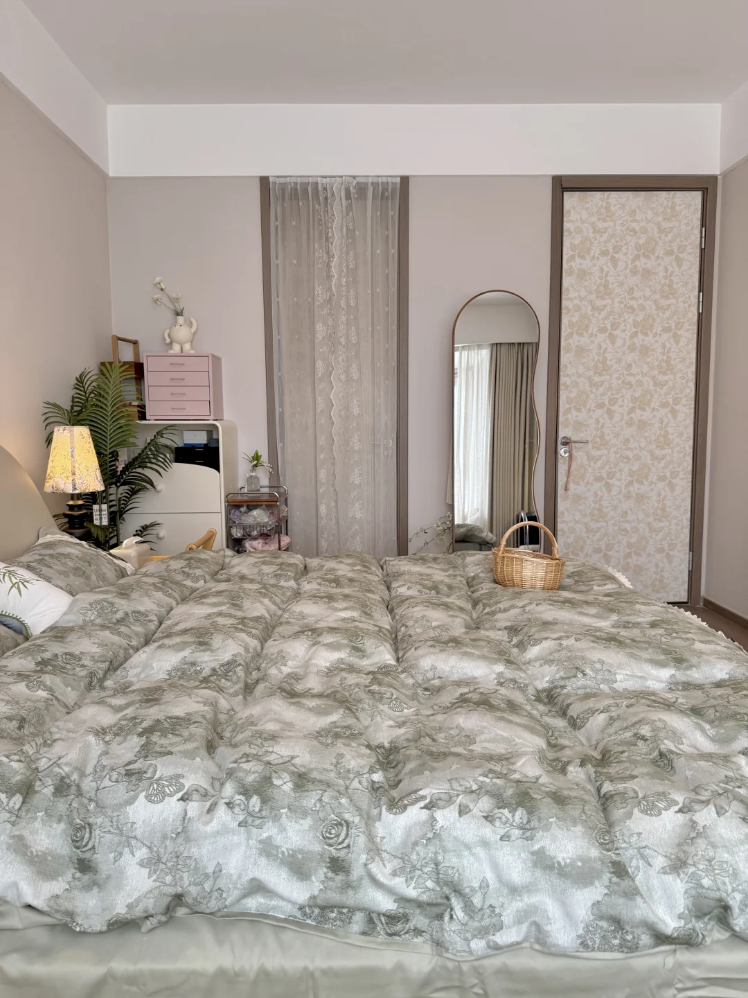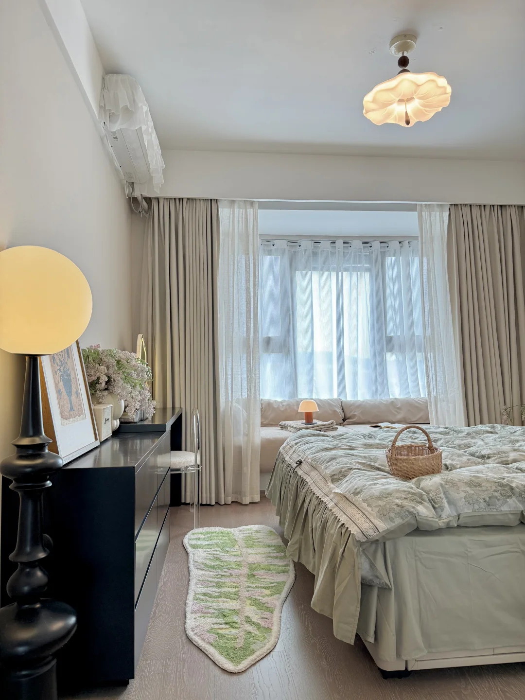 我的卧室只有13平 放了一张1.8米床🛏️ 床尾还可以放得下梳妆台 过道放个绿色床边毯刚刚好 不能砸的飘窗铺上垫子变身小沙发 靠软装支撑起来的卧室 入住2年多,越住越爱~