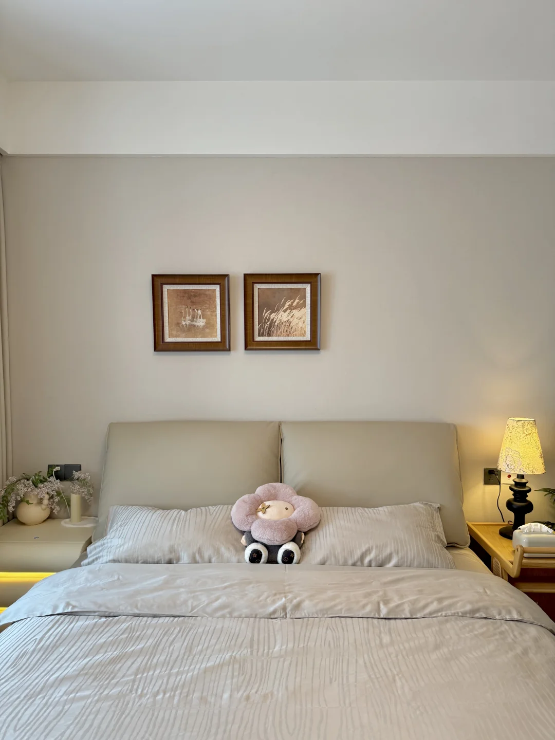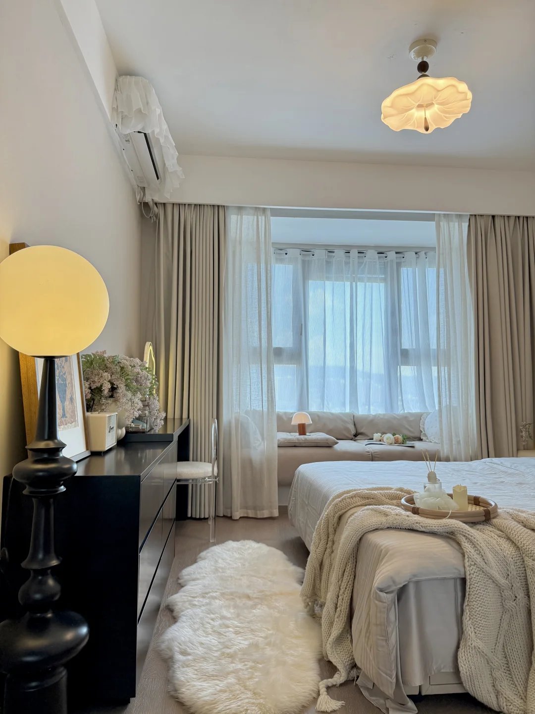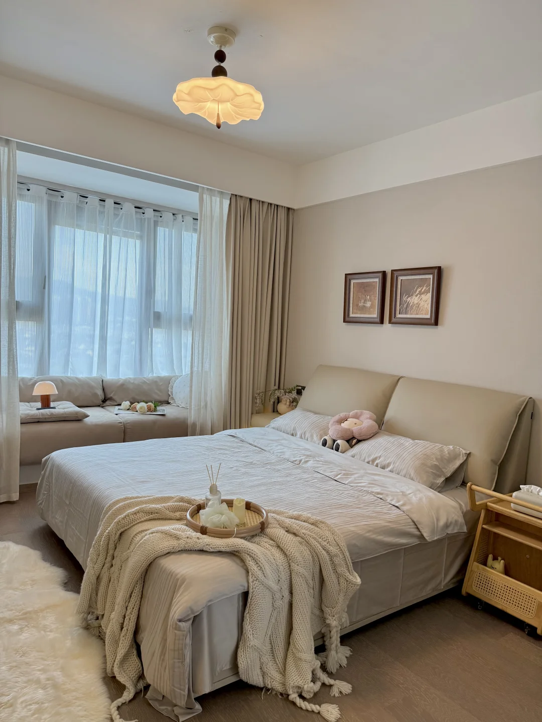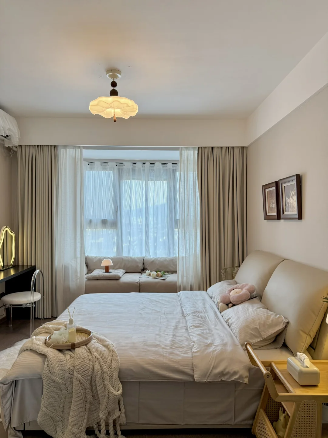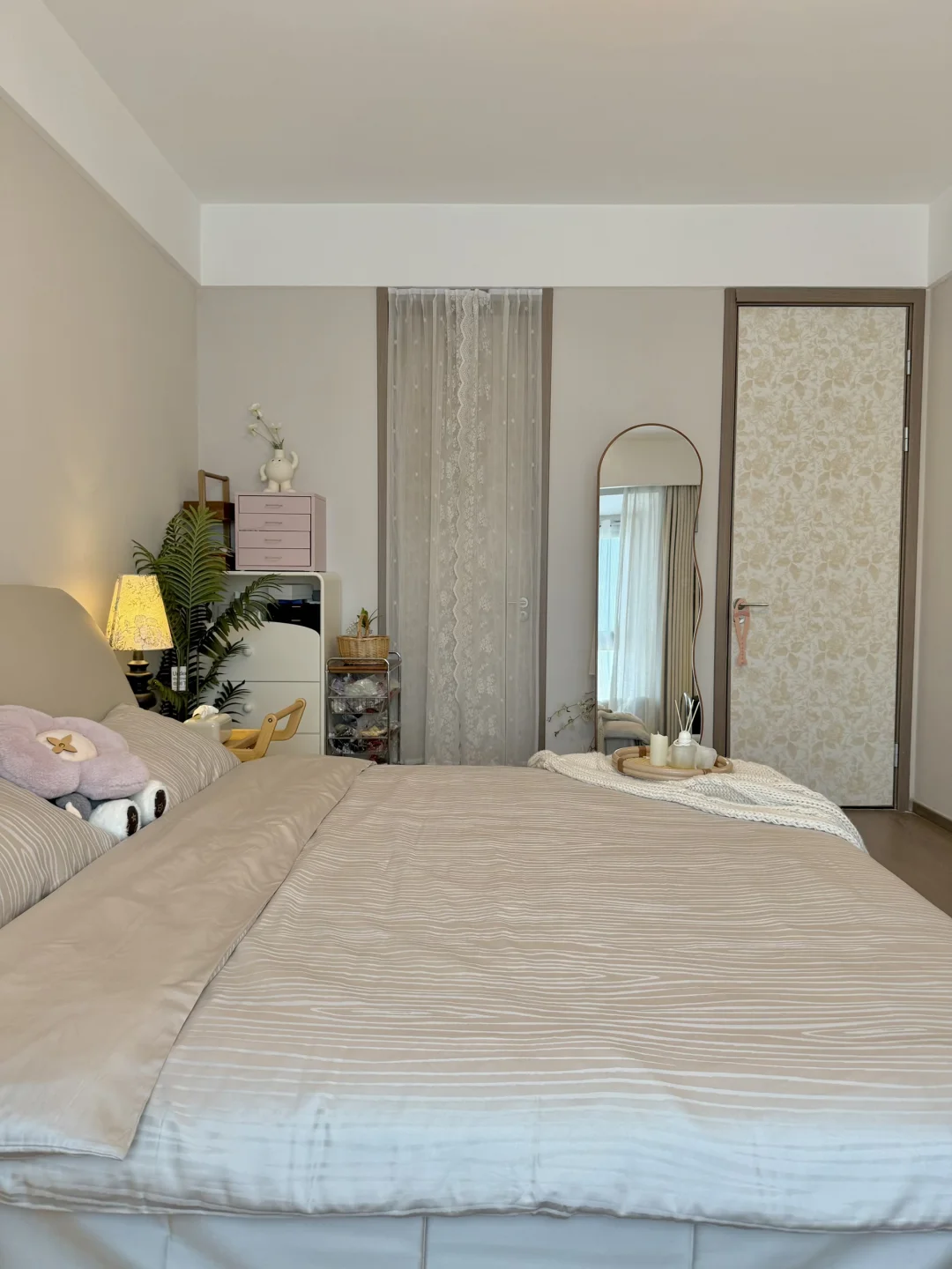 把主卧改造成了自己喜欢的样子 装修预算有限,所以简单硬装 全靠软装打造理想中家的样子 利用床尾空间放置了梳妆台💕 房间的每一处角落都美到了心里 闲暇时和小猫咪一起窝在卧室 简直舒服的不想出门啦🤭