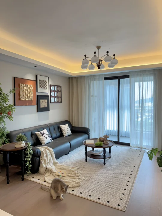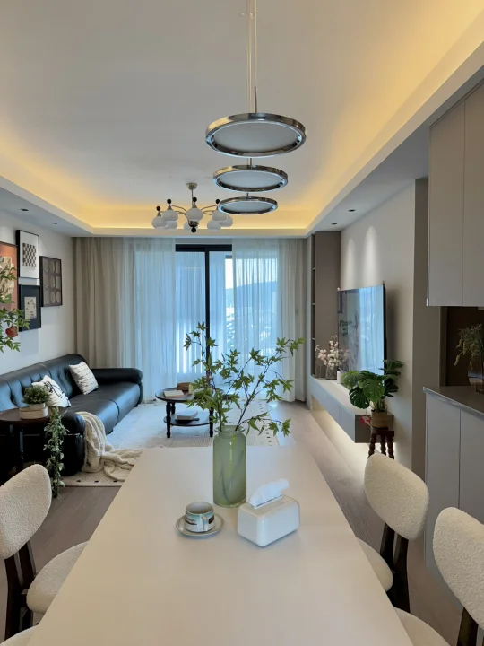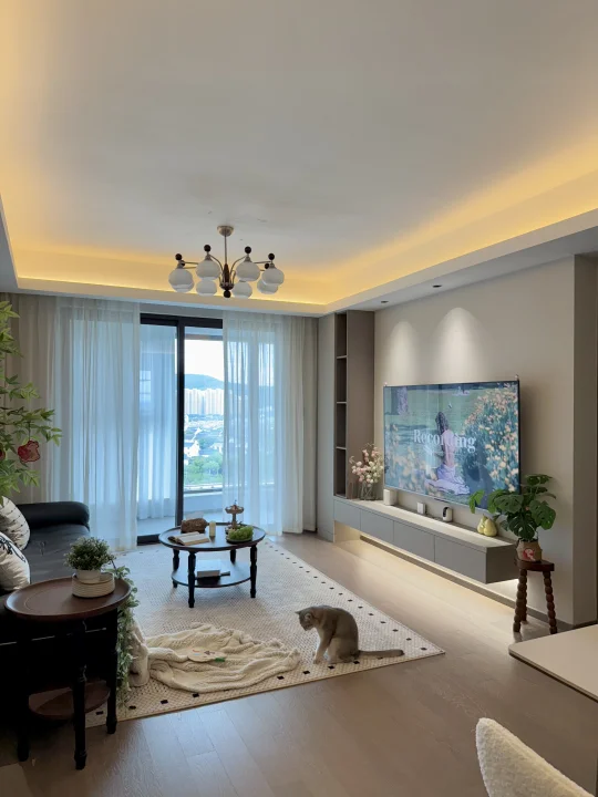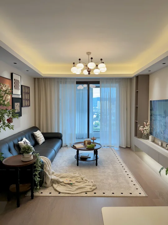 我家套内100平,四室两厅精装修 硬装9w,软装5w(含柜子和家电) 没请设计师🧍♂️自己刷装修的 简简单单的硬装,全靠软装搭配 客厅是我家最满意的设计之一 选择柿子吊灯很有质感💡 入住2年多,越看越幸福~💗