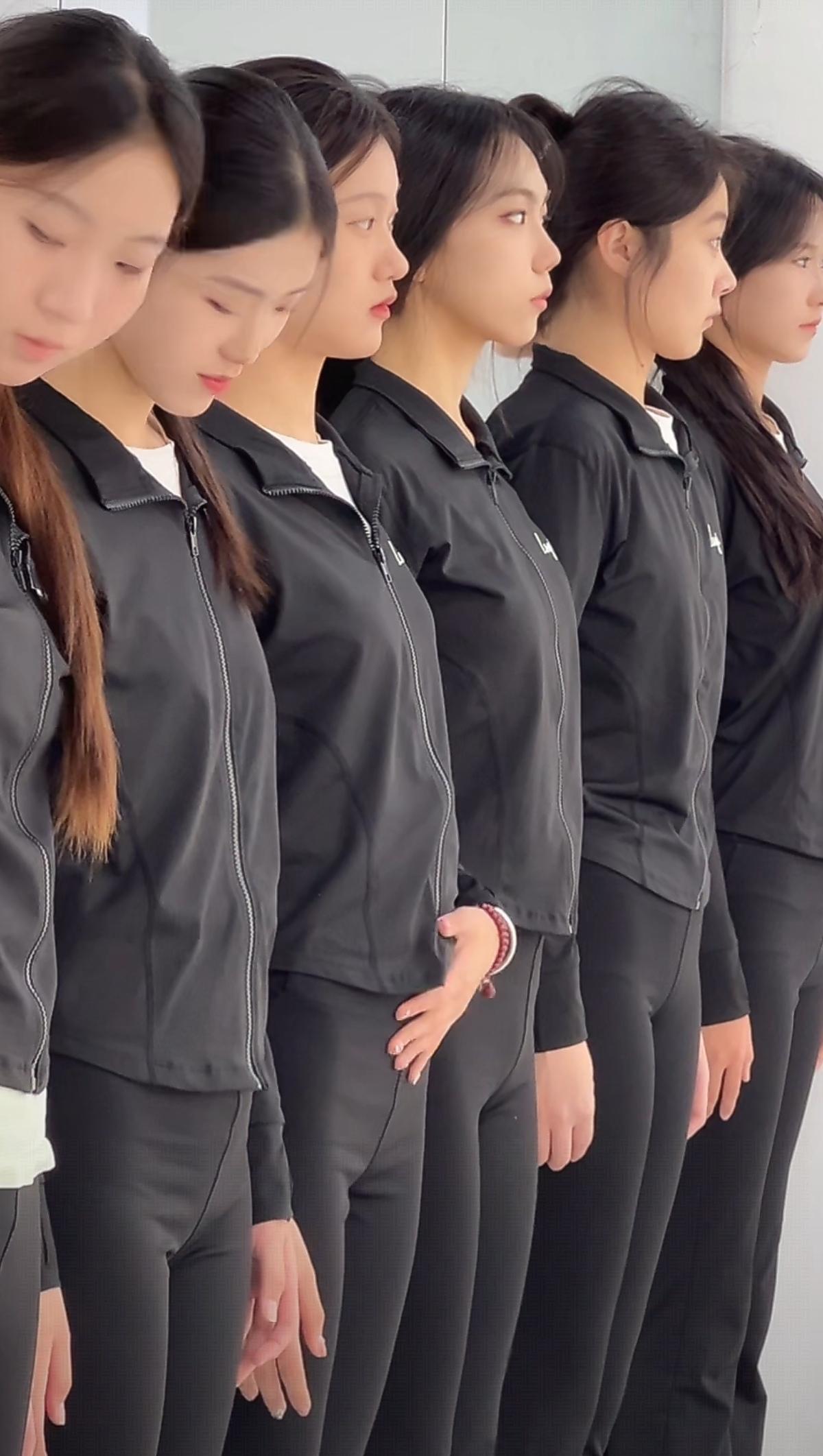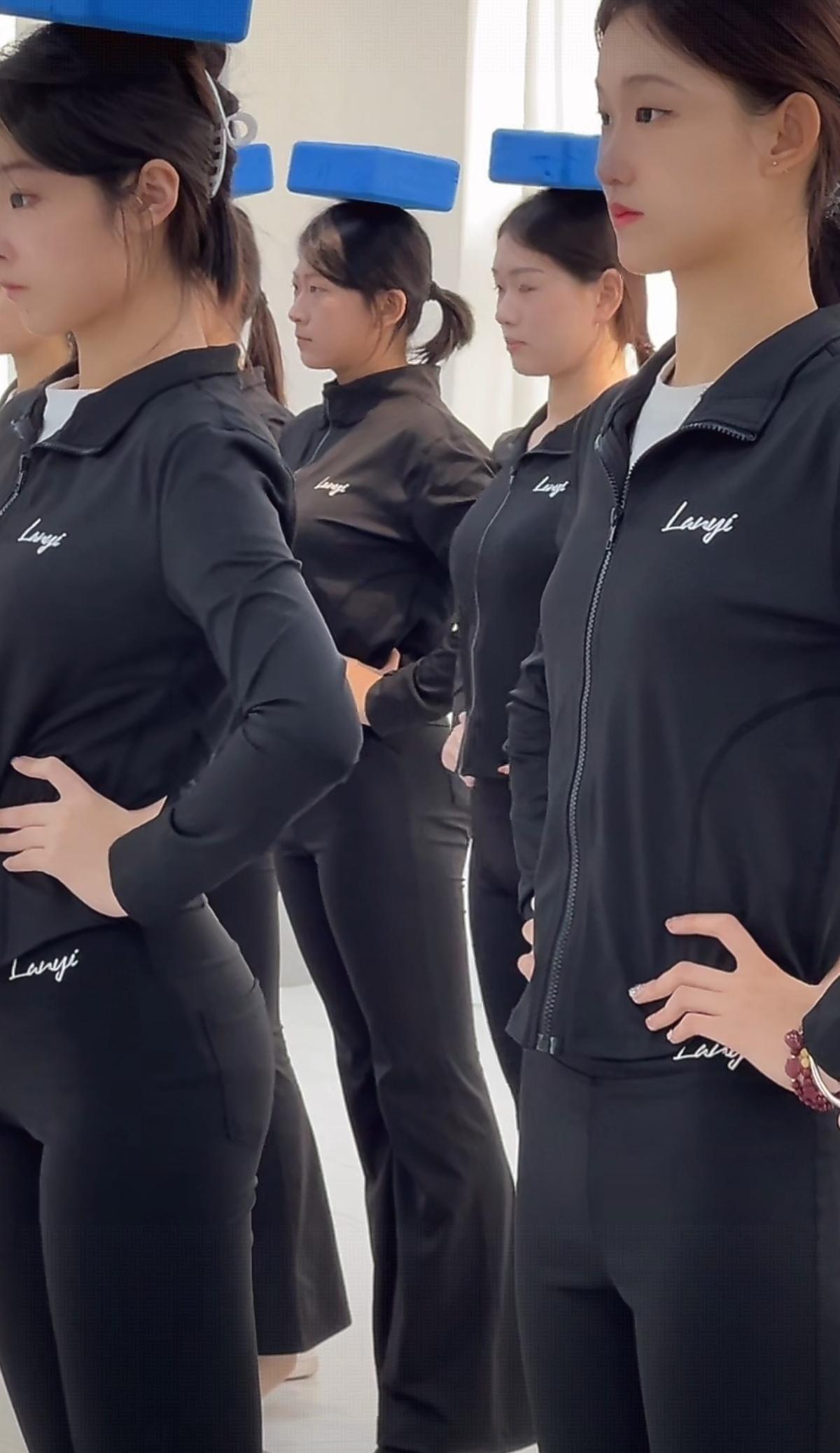 山东空乘模特艺考的女孩子们, 每个至少175以上吧! 她们为啥头上要顶一块砖呢?