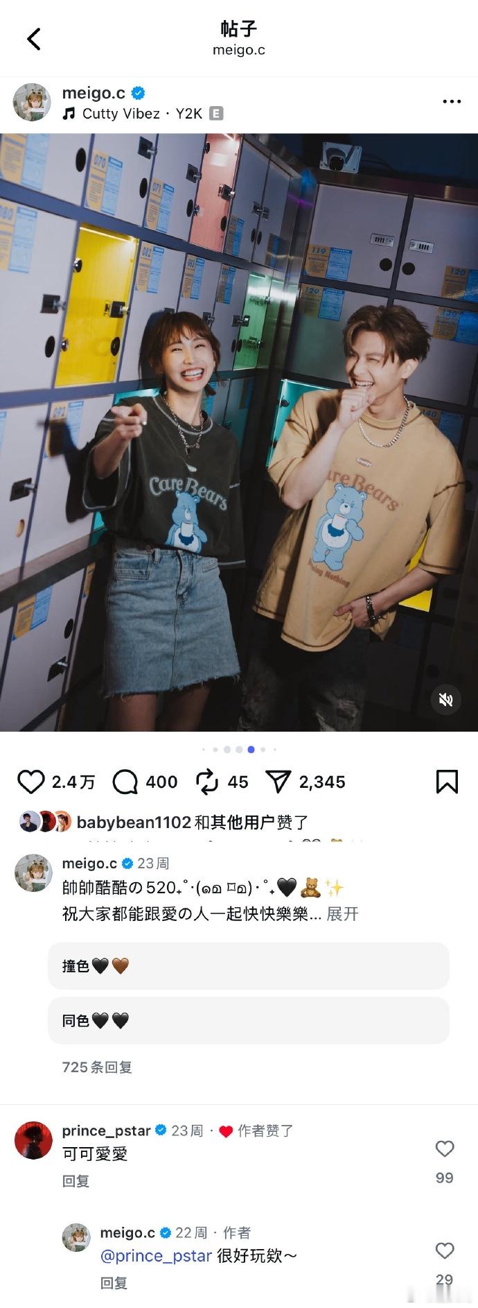 王子粿粿曾在贴文亲密互动 有网友扒出王子和粿粿此前贴文亲密互动,感觉看起来关系确实很密切了[思考]