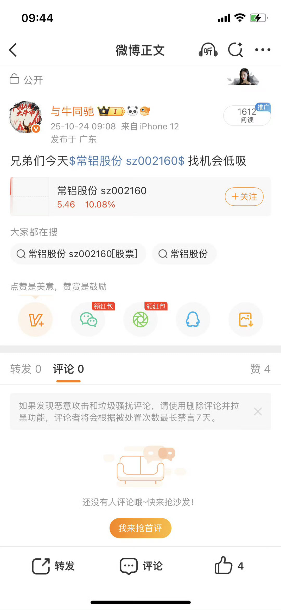 兄弟们送给大家常铝股份 sz002160[股票] 又板了