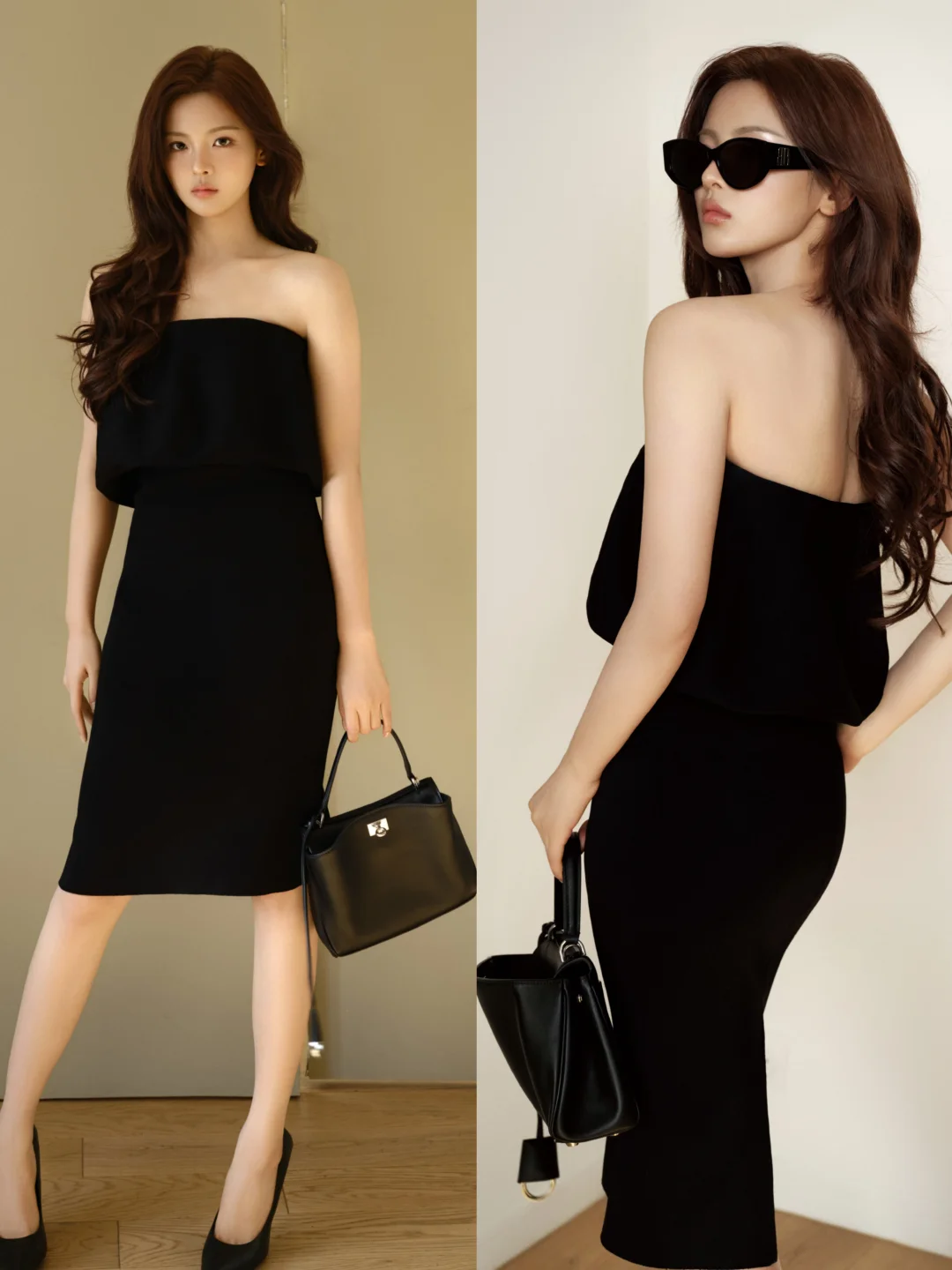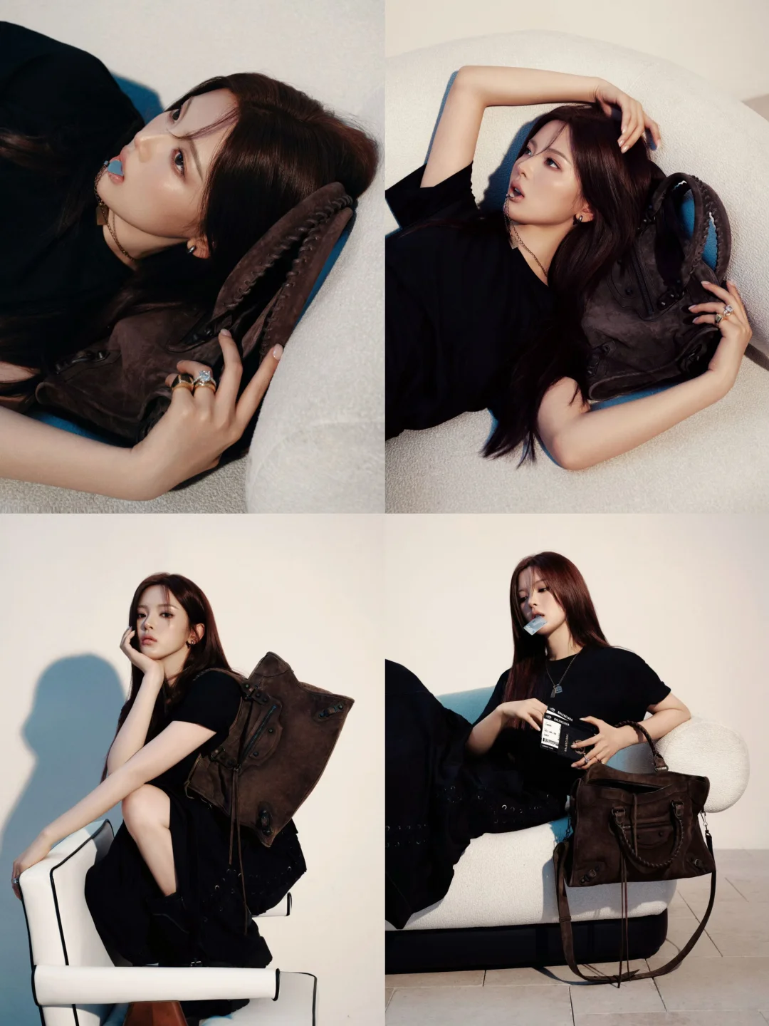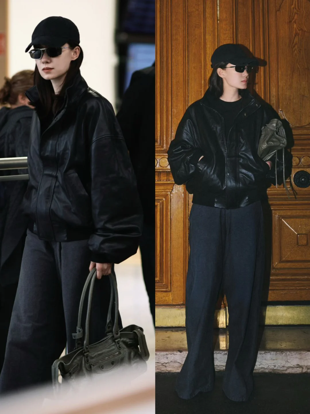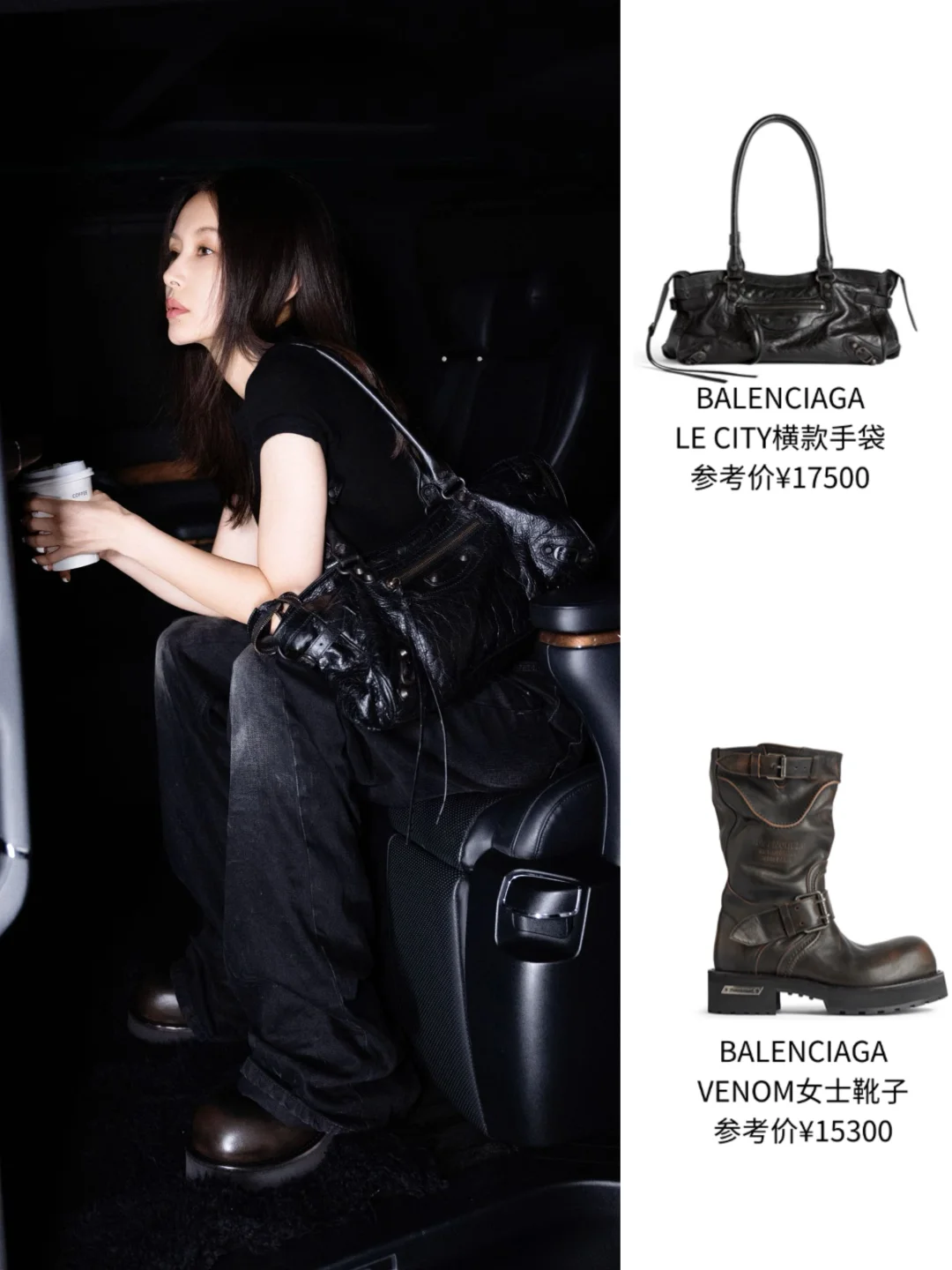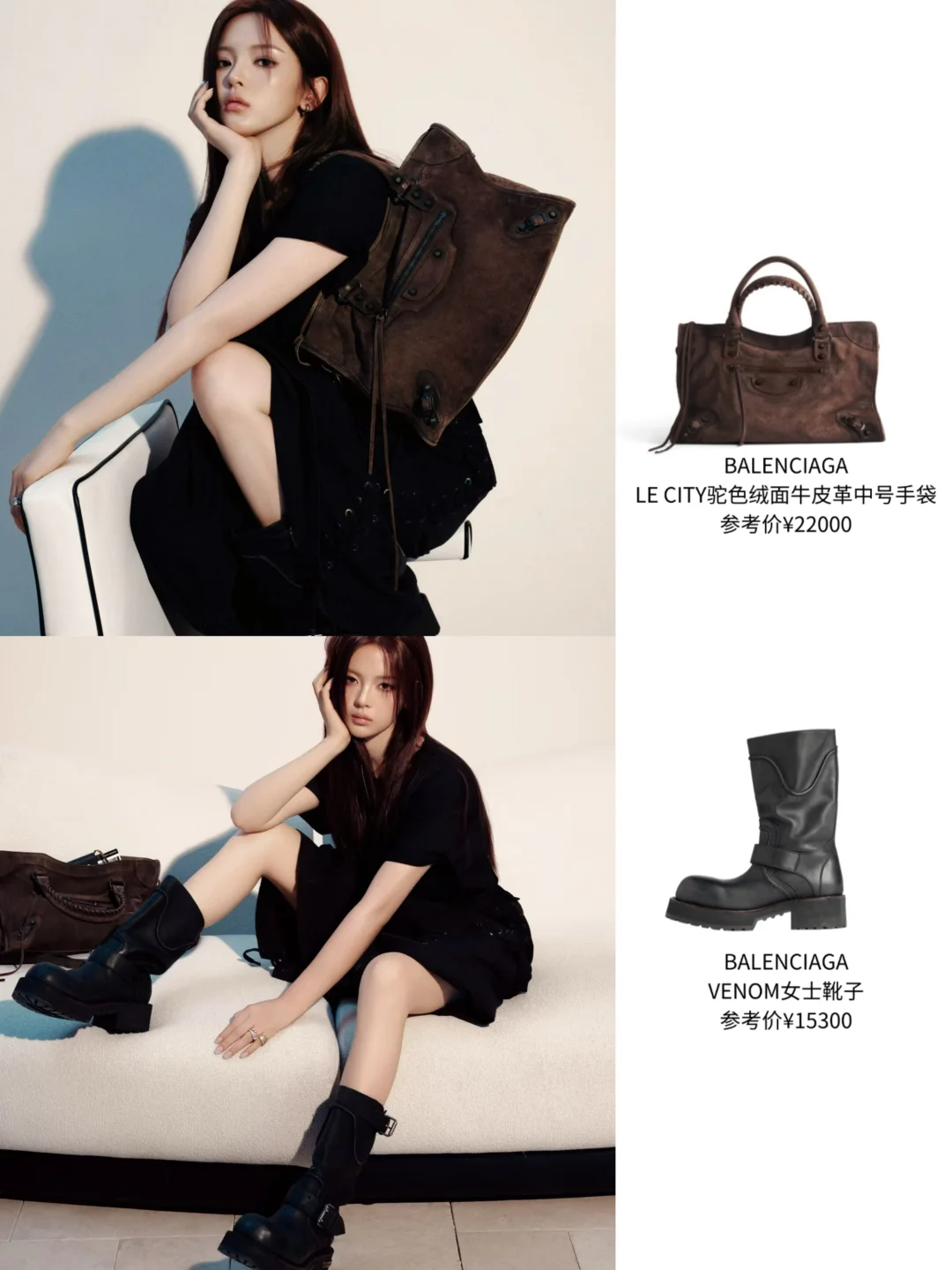 包包依然是亮点,杨超越的Le City系列新款绒面手袋,驼色绒面材质秋冬氛围感拉满,搭配黑色绑带裙,甜酷感十足!