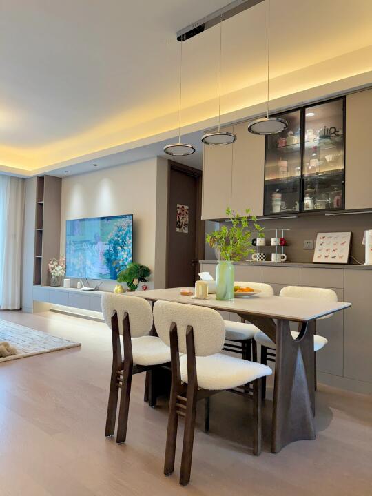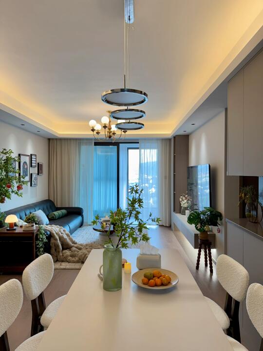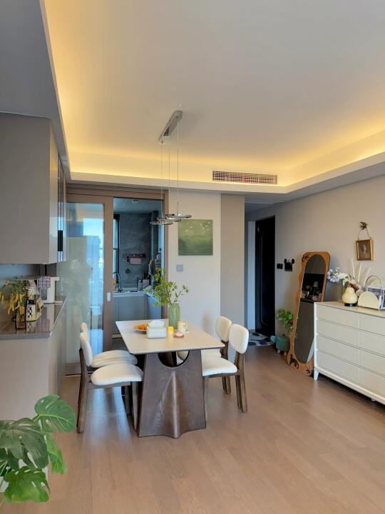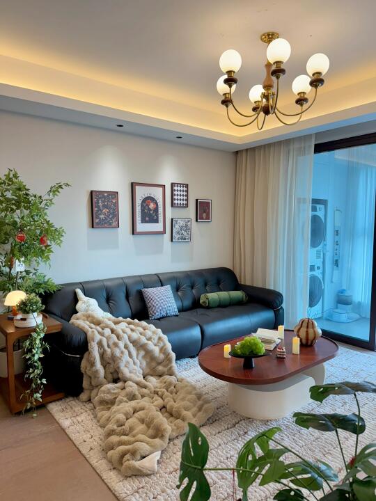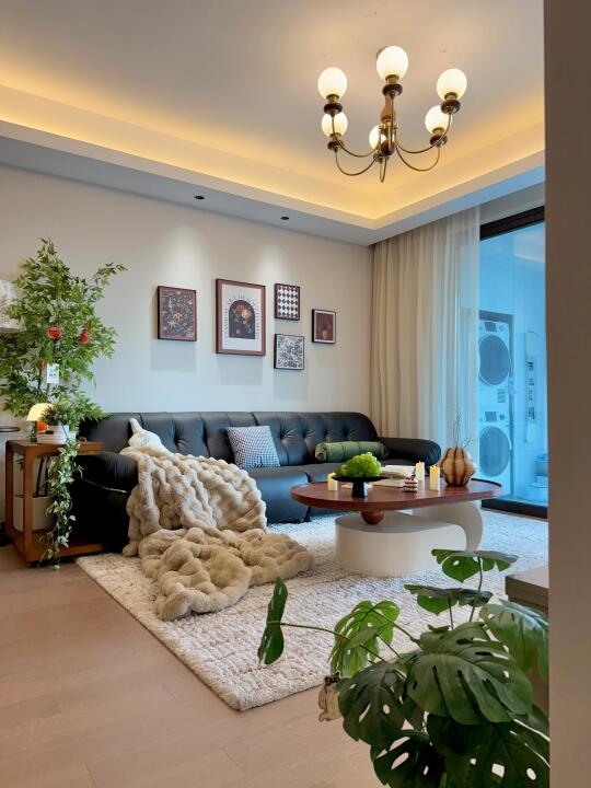 坐标苏州🏡建面 128,套内100 硬装9w➕软装5w💰 是我的首套房也是第1️⃣个家 手里也没有很多钱去装的特别好 好在颜色搭配没翻车,以⚫️⚪️🟤为主 黑色沙发搭配复古魔豆吊灯💡 哑光白的岩板餐桌中古风满满 一点一点把精装房变成了家🏠 分享出来,给大家一点配色灵感~