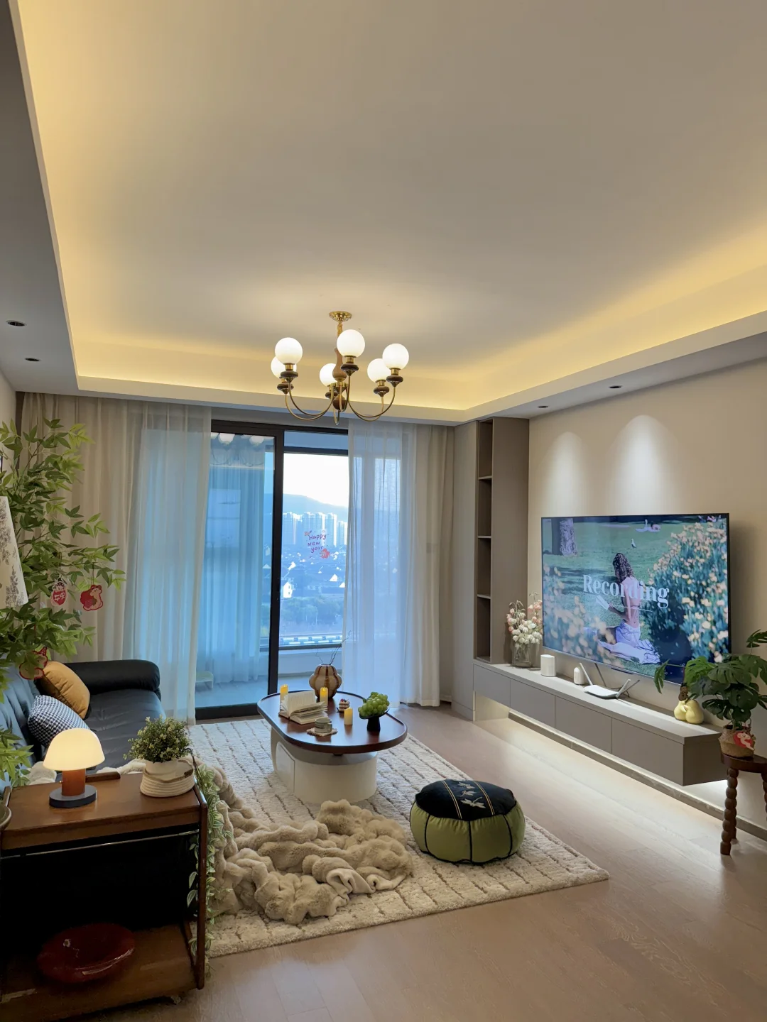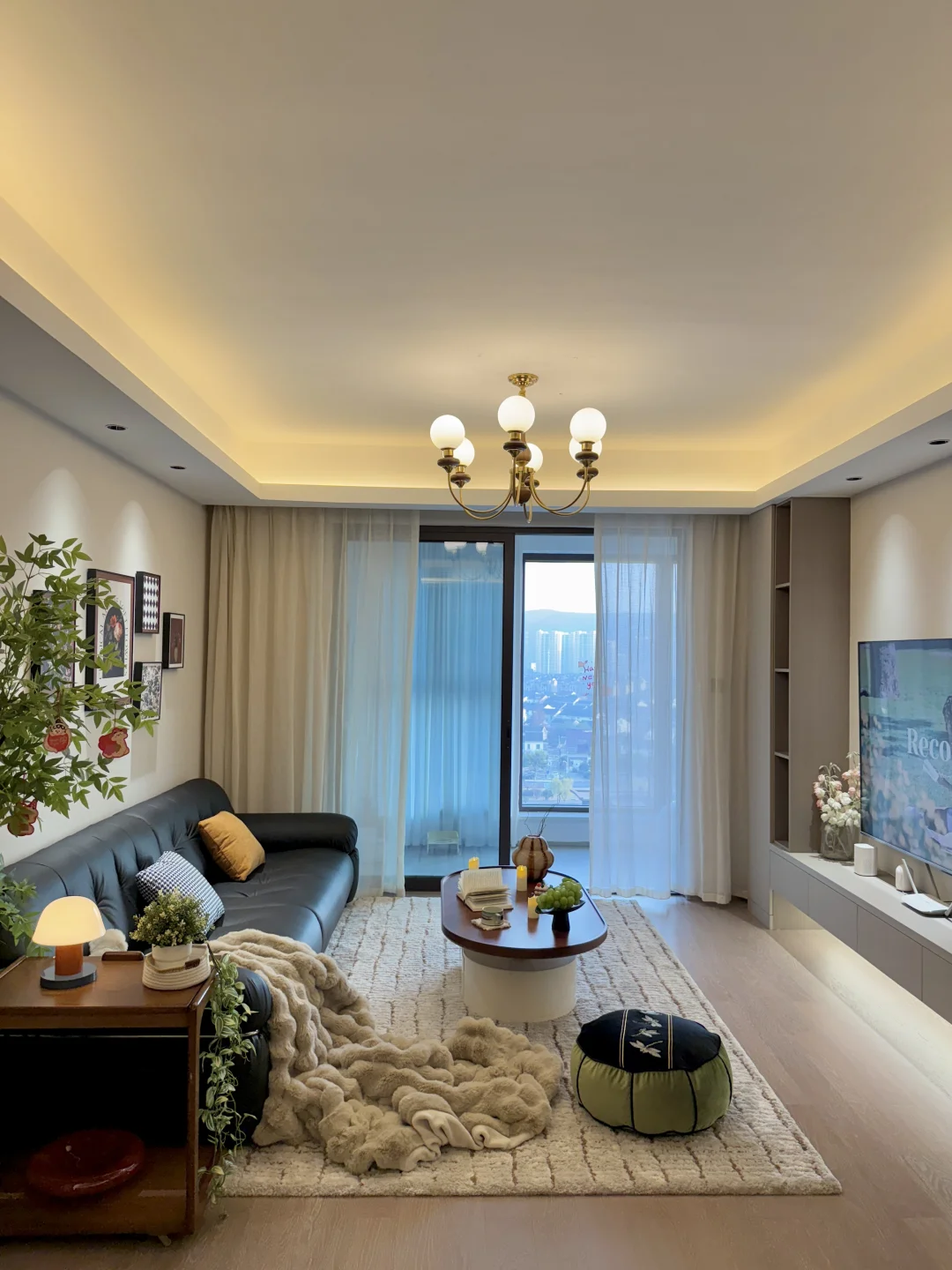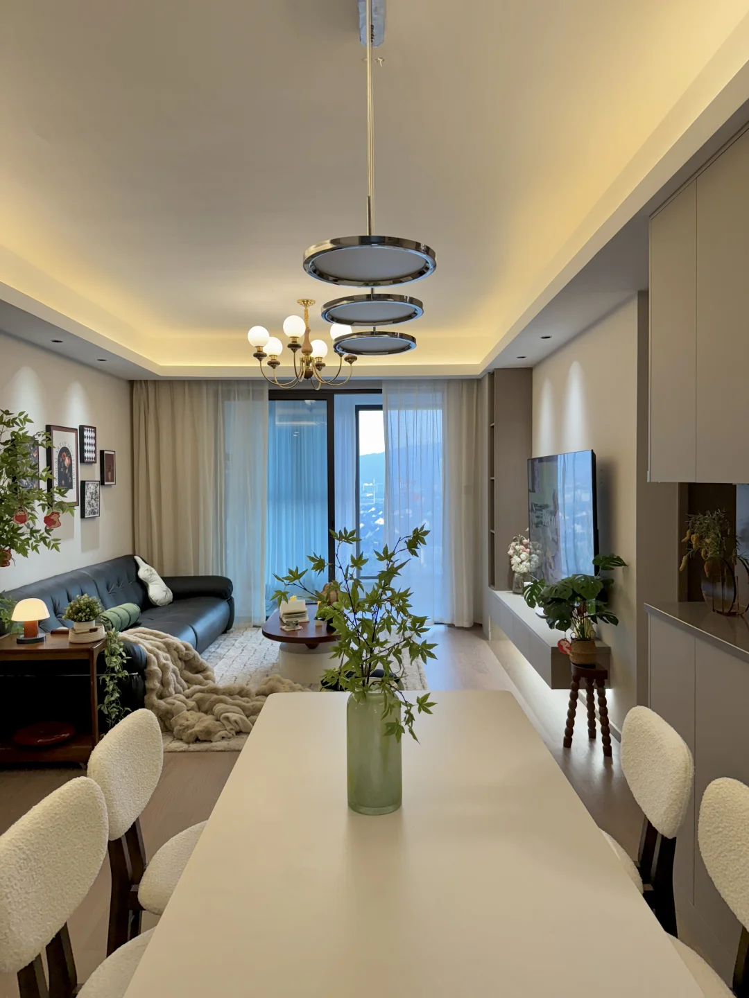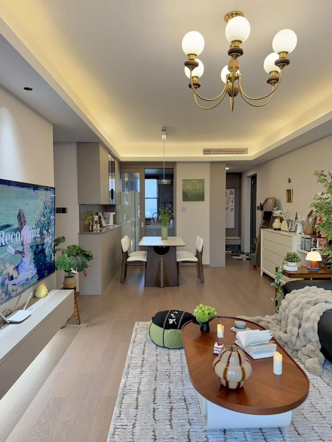 我家是建面128,套内的100的精装房,没做复杂的吊顶和电视背景墙,也没有阳台通铺,拆掉推拉门,简简单单也能装出让我喜欢的家🏠