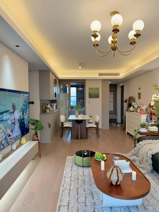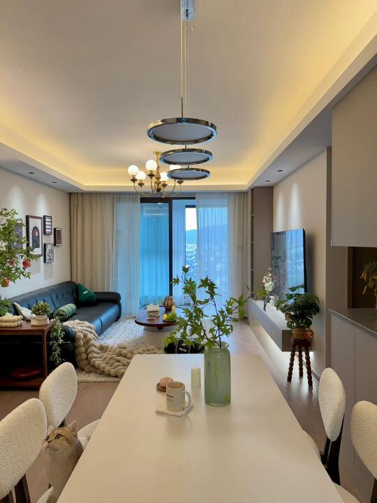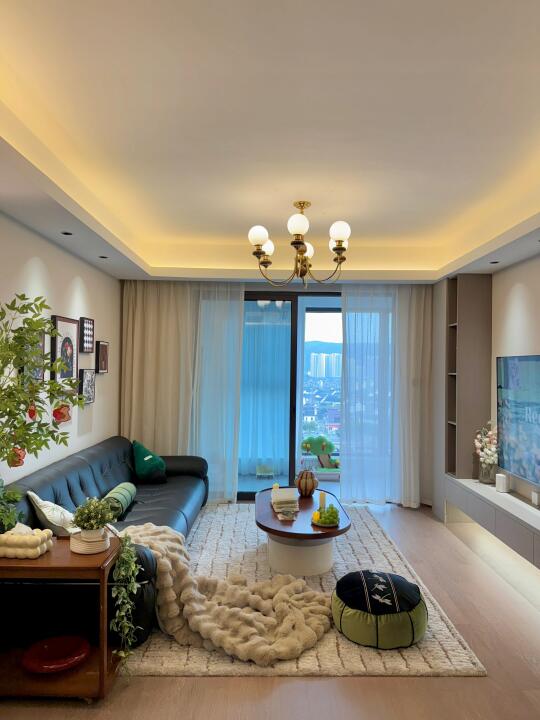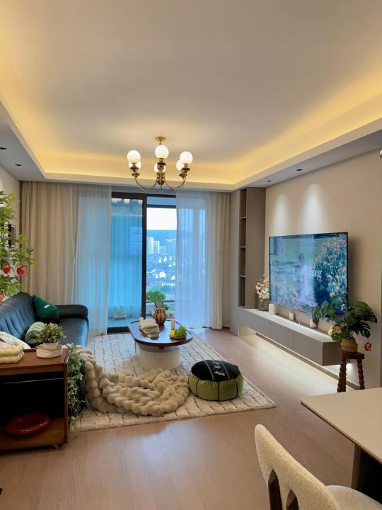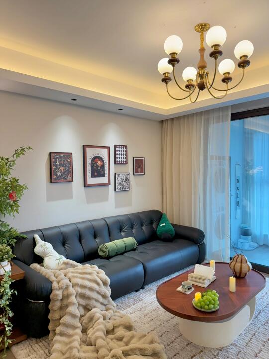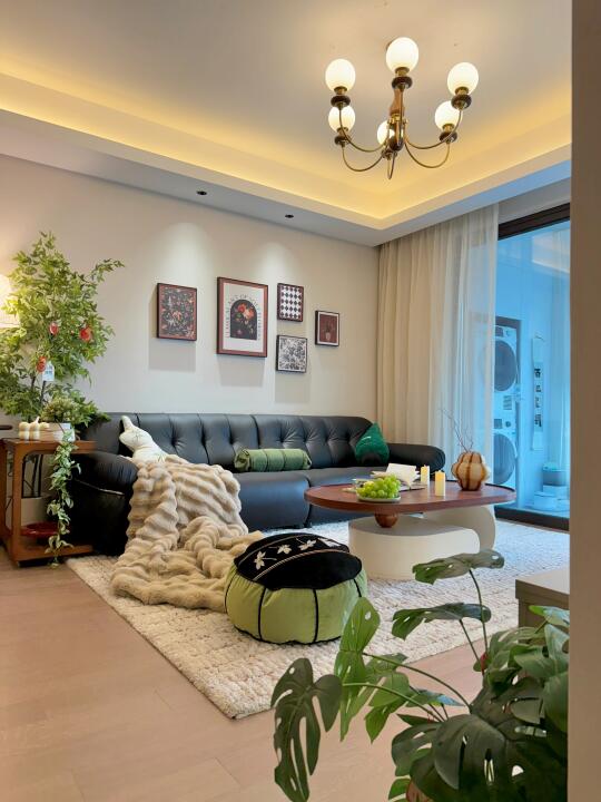 硬装9w,软装家电5w💰 风格是⚫️⚪️🟤搭配的中古风 没做复杂的吊顶和电视背景墙 黑色沙发搭配复古魔豆吊灯 简单装修的小家也可以温馨舒适~