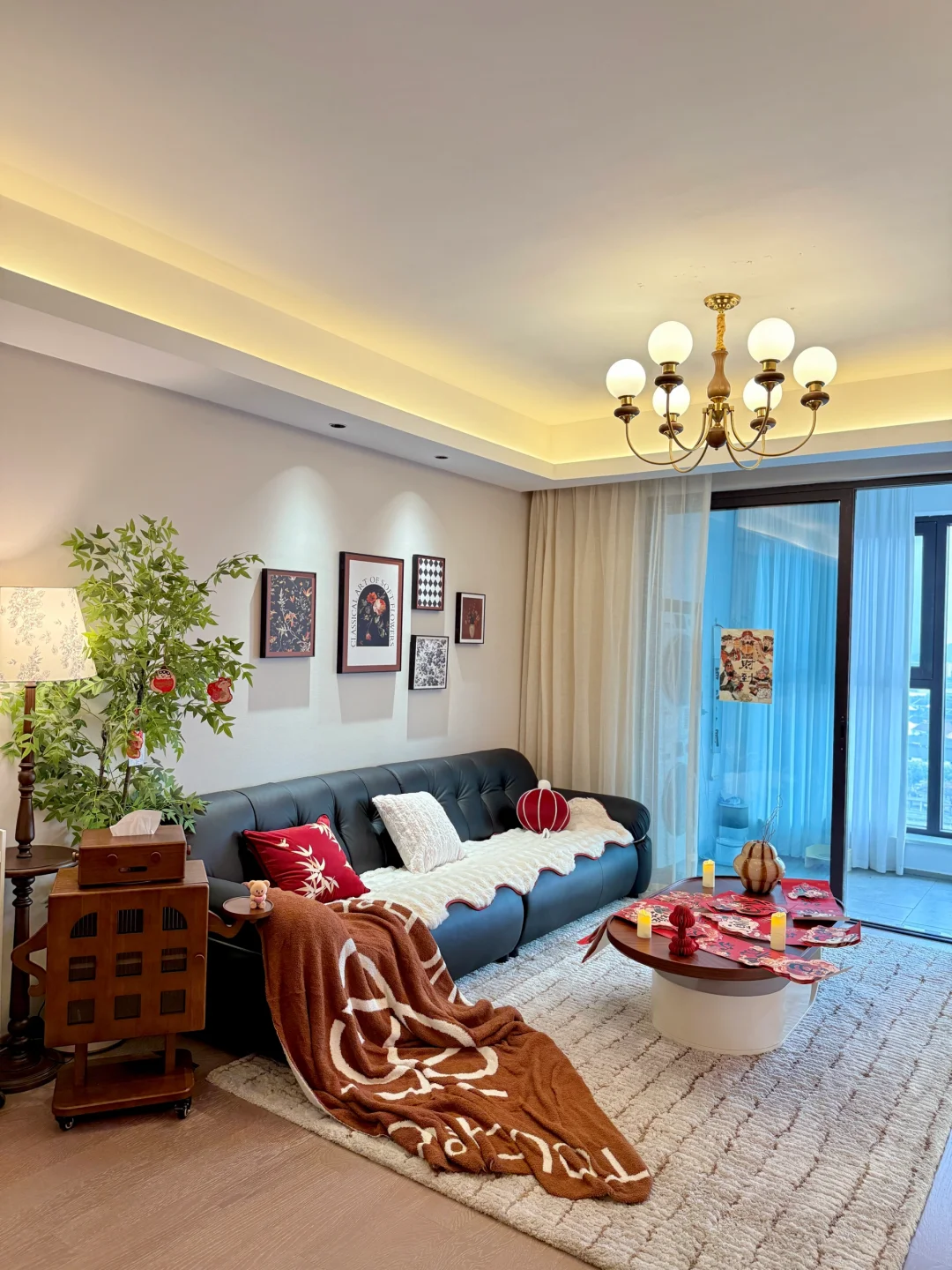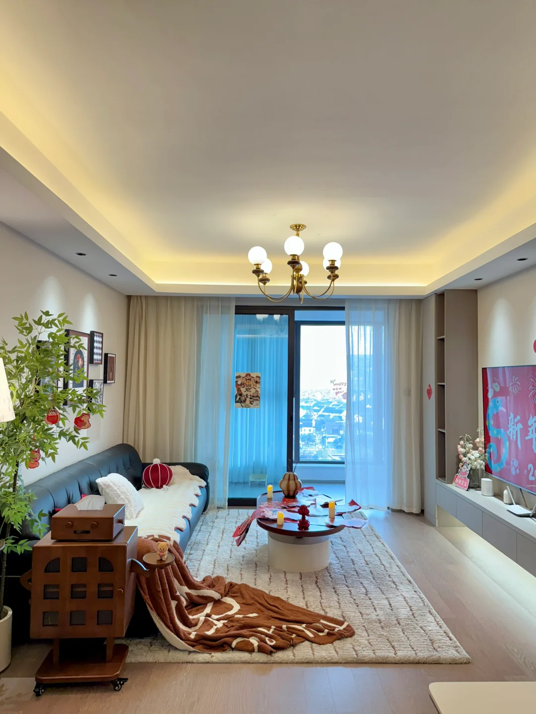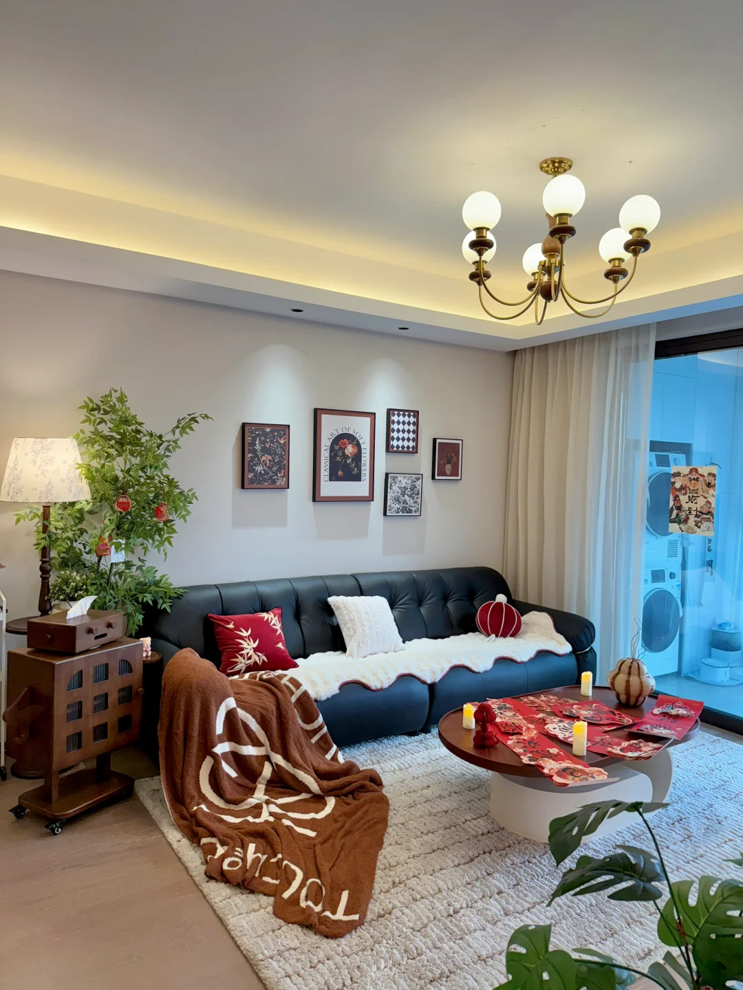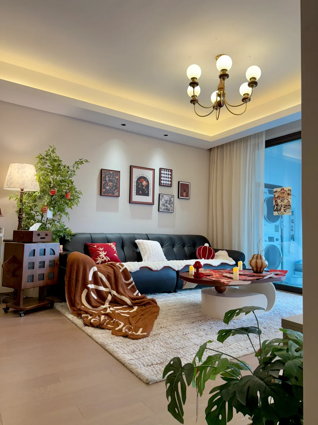 我家精装房128平套内100平 硬装没做什么复杂造型🥹 全靠5W的软装拼凑温馨感小家 复古魔豆吊灯搭配岩板餐桌🟤⚫️ 组成了现在这样一个简简单单的家 虽然不够完美,但有家了💕