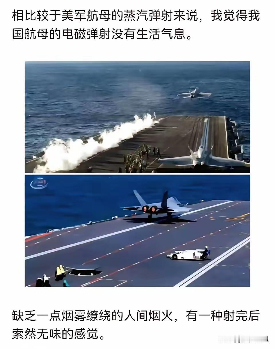 战忽局又立功了,前段时间网上有人说我们航母的电磁弹射没有生活气息,跟美国的蒸汽弹射相比缺乏一点烟雾燎绕的人间烟火,有一种射完后索然无味的感觉,当时很多人都骂它和笑话它,说它是殖人的思维,昨天美国总统特郞普在驻日美军航母上讲话,说喜欢蒸汽弹射时甲板上的美丽景象,认为电磁弹射没有那股味道,跟这人说的一模一样,妥妥的战忽局的人啊