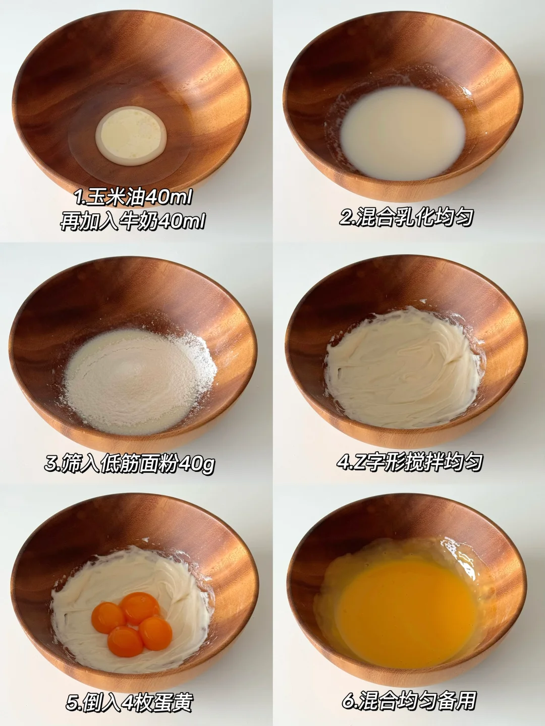 玉米油40ml、牛奶40ml、低筋面粉40g