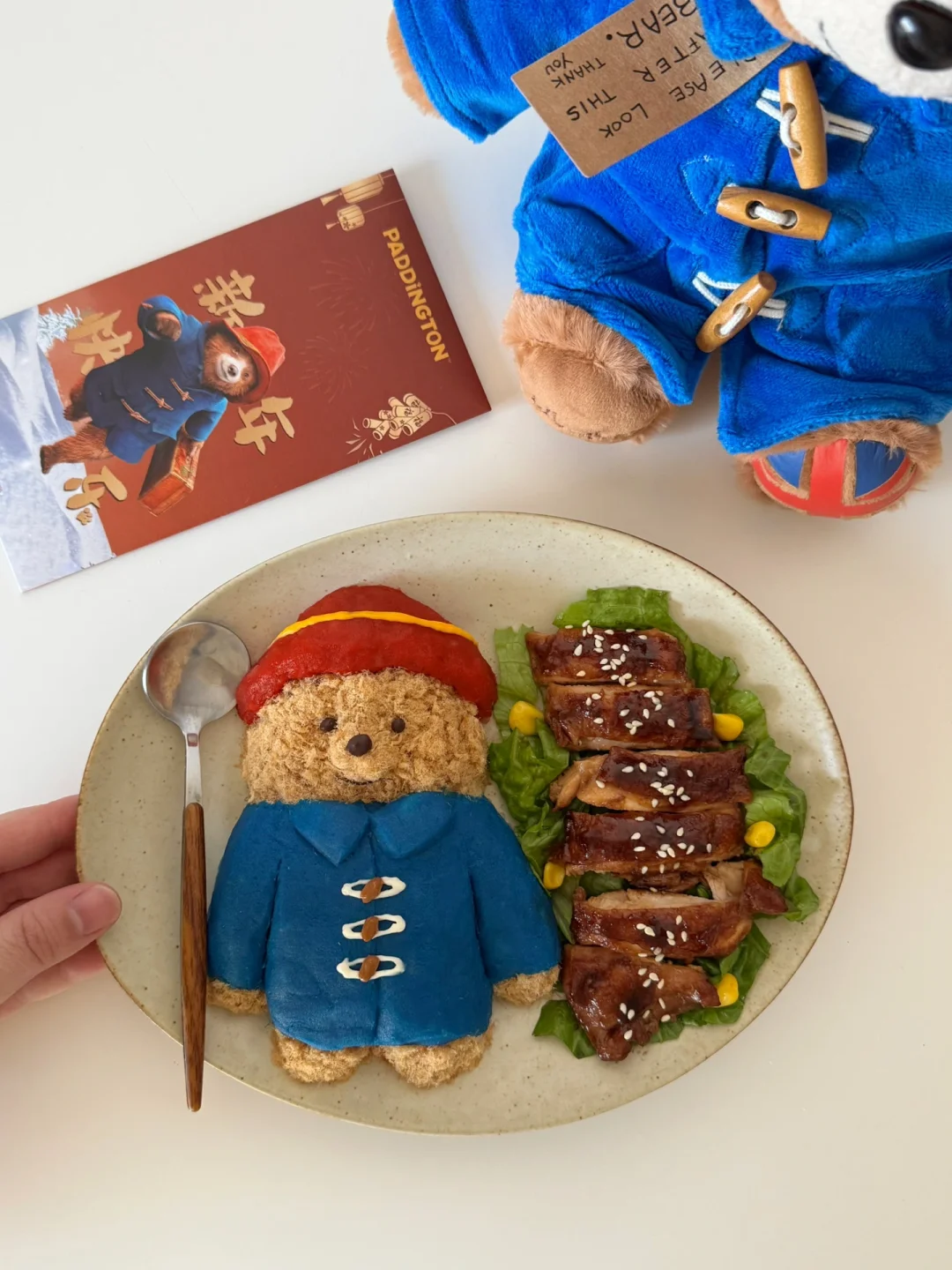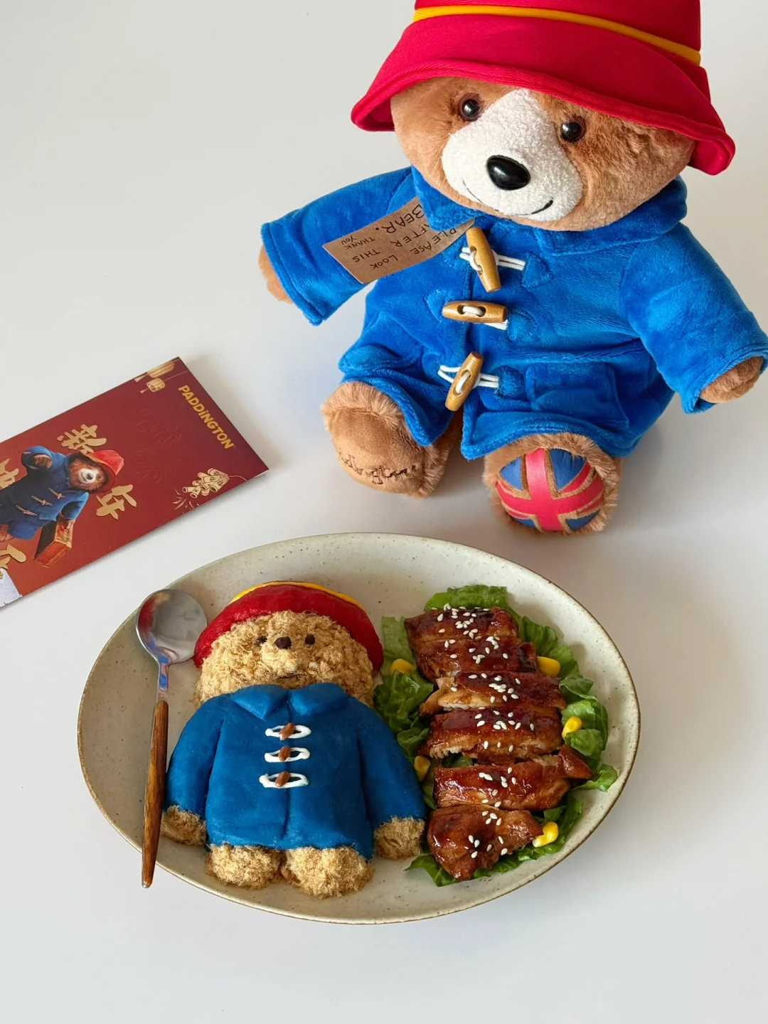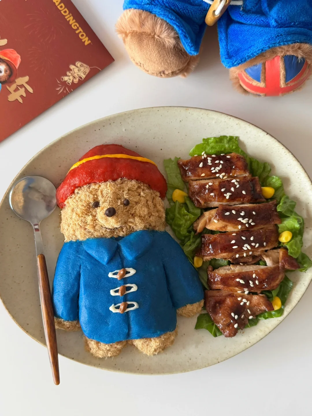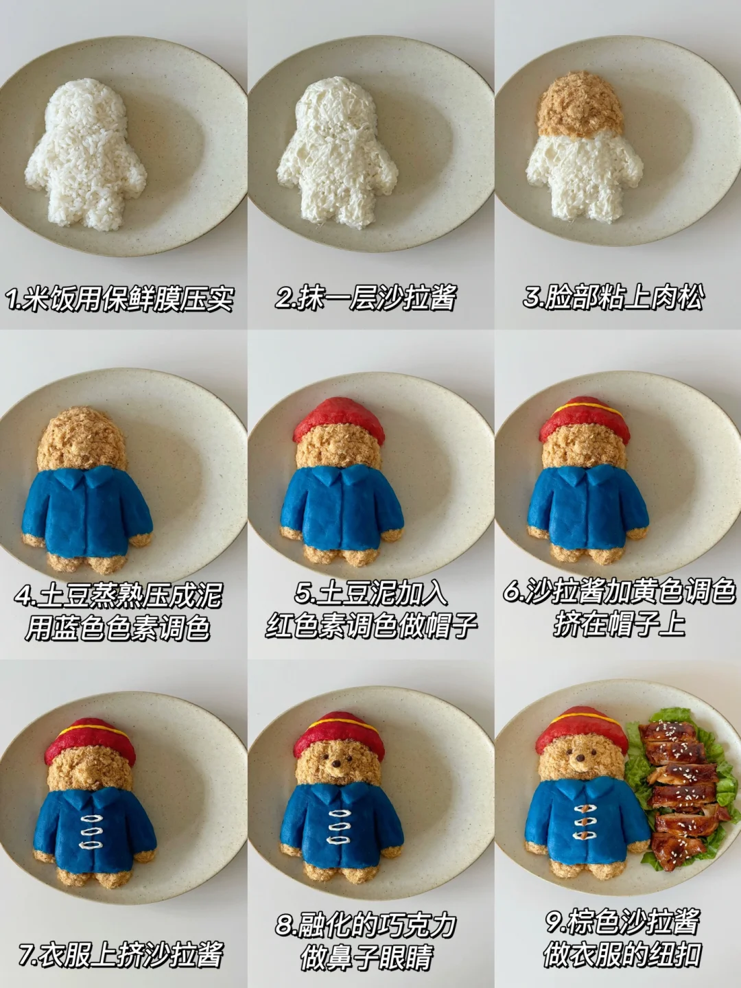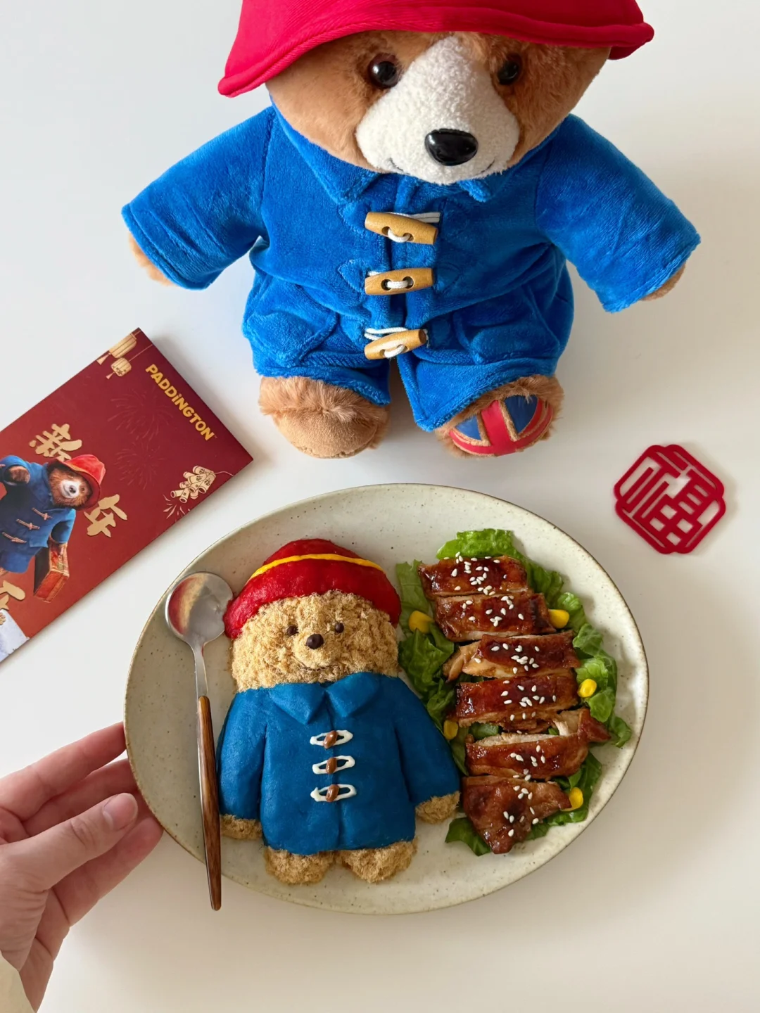 过年在家重温了帕丁顿熊电影🎞️可爱又治愈~蓝色的牛角扣大衣➕红色帽子是独属于它红蓝的经典配色~今天就用食物来复刻DIY一下它吧~