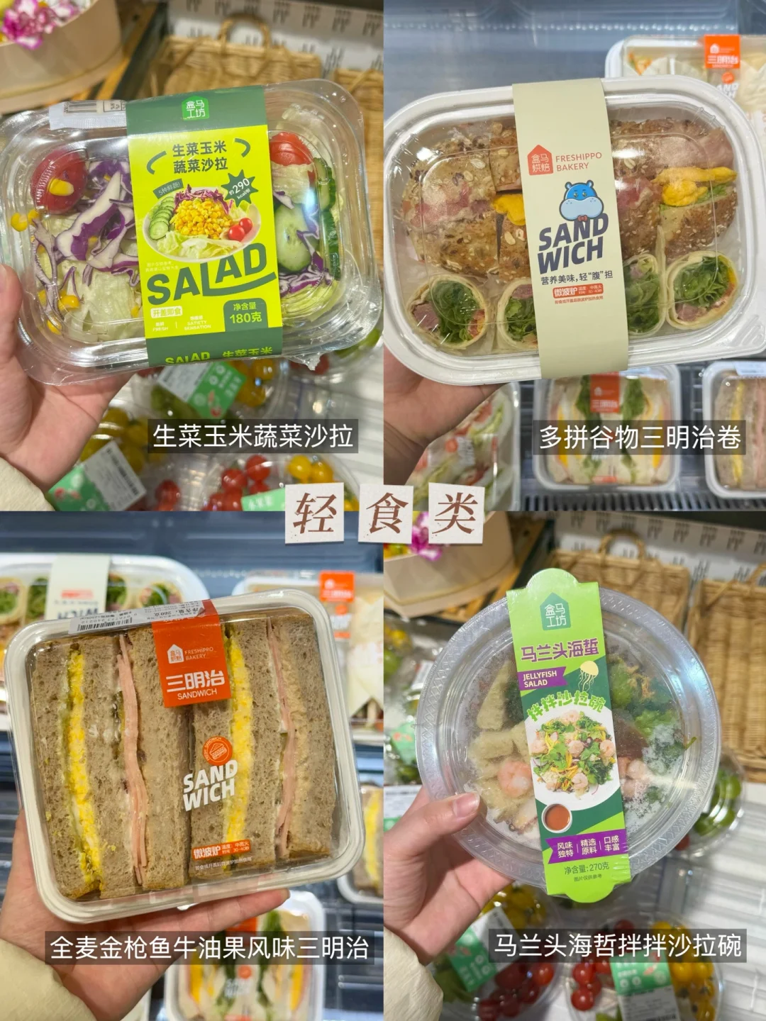 盒马有搭配好的沙拉、轻食、全麦三明治等等🥪适合早八上班族/懒人党,省时省心🥒可以根据口味和热量按需选择!