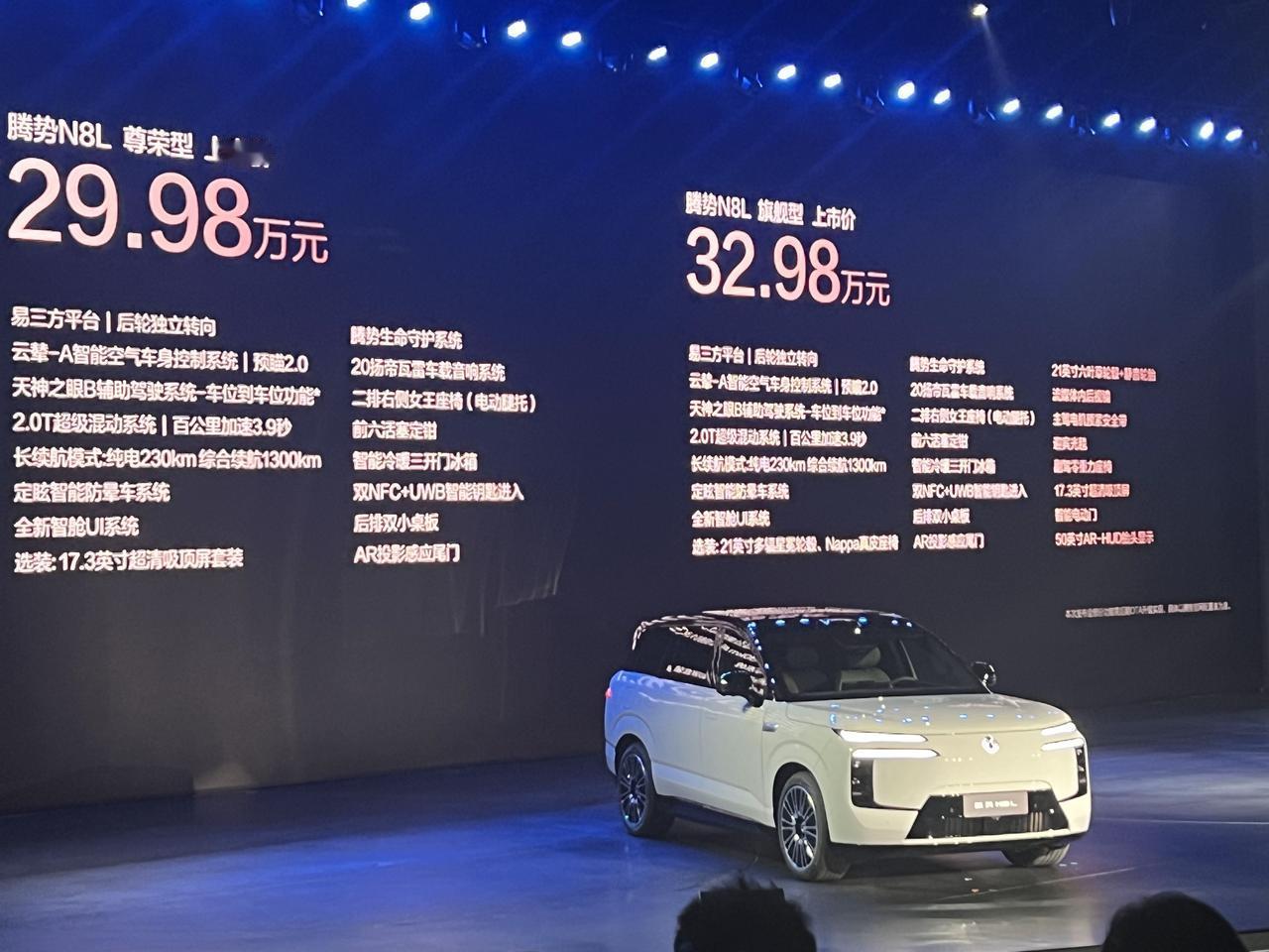 腾势N8L 29.98万起售,越级价值终极满足,将百万级配置悉数标配,让同级竞品黯然失色。 动力与操控双在线,2.0T三电机超级混动系统爆发出3.9秒零百加速,1300km综合续航彻底告别续航焦虑。云辇-A双腔空悬搭配智能路面预瞄,再加上后轮独立转向,4.58米小转弯半径兼顾平稳与灵活,原地掉头轻松应对复杂路况。 安全从不妥协,2000MPa热成型钢车身+9安全气囊筑牢防护,多项极限测试认证彰显硬实力,天神之眼B激光雷达辅助驾驶覆盖全场景出行。5.2米车长搭配3075mm轴距,三排电动调节座椅+加热功能,再加上帝瓦雷音响、后排吸顶屏与智能冰箱,豪华舒适感拉满。 较预售价直降2万,不足同级豪华SUV三分之一的价格,却标配六大核心科技,这波越级价值,堪称终极满足。【来自懂车帝车友圈】
