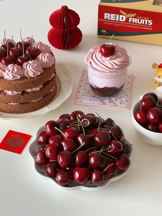 今天用到的车厘子是来自澳洲塔斯马尼亚的礼帝樱桃Reid Fruits🍒采摘下来72小时空运送达!收到的时候果梗都还是翠绿翠绿的~真的很新鲜!而且每一颗都色泽鲜艳,圆润饱满🌹 一口下去,肉厚核小,脆甜爆汁✨浓郁的樱桃果香瞬间征服你的味蕾!这样2kg一盒装过年走亲访友送礼也很合适🧧