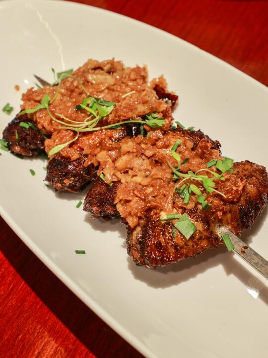 🤣但这家主打一个又是“创意”、又是“融合”的“板前烧肉”,路没有走窄,反倒是找到了自己的受众,结合湖湘特色之余,带来了许多东南亚风味,也容易满足“烧鸟爱好者”之外的肉食动物者,挺不错的。