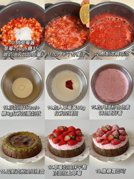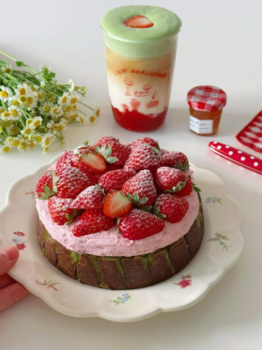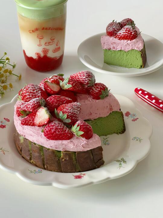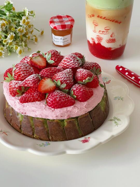 今天又安排上了草莓蛋糕🍓抹茶巴斯克搭配草莓奶油🧁是百吃不腻的搭配组合🥰