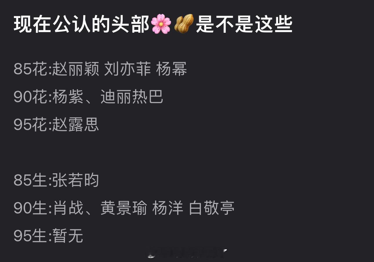 有网友盘点了内娱现在公认的头部🌹🥜,大家认同吗?
