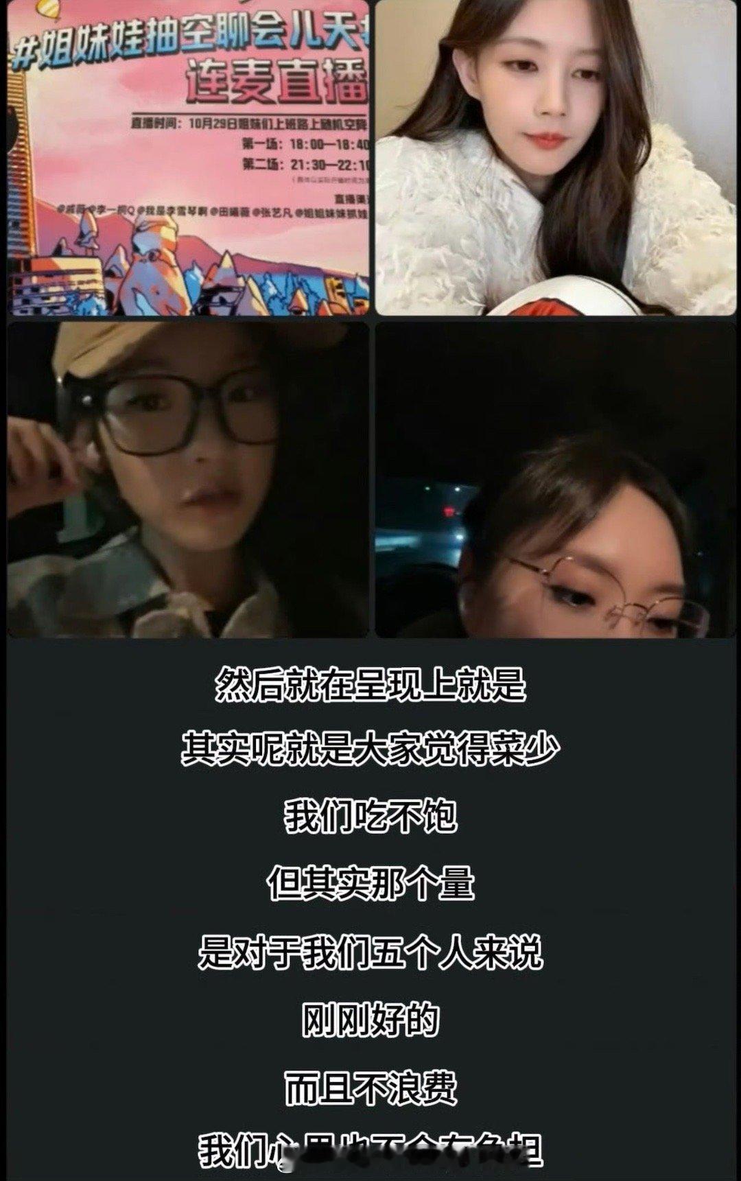 张艺凡辟谣录节目吃不饱睡不暖 张艺凡亲自打破“录节目吃苦”传言!解释说5个人点菜秉持够吃不浪费原则,餐食总量完全足够,看起来不够是节目效果,连看牛排的可爱反应都是真实状态,太接地气了!