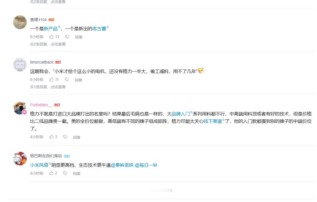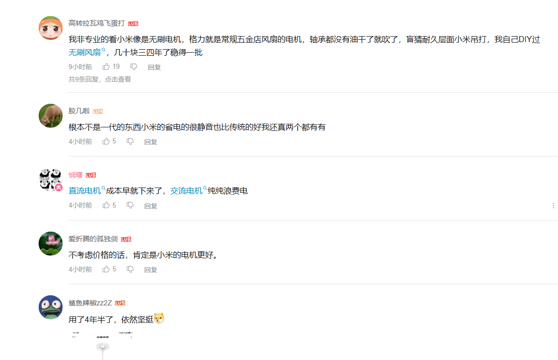 同样是格力风扇和小米风扇的拆机对比视频,我发到DY就是格力的电机大,小米的电机小,所以格力的好。我发到B站看这些评价就明显正常多了。DY那地方真是降智啊!