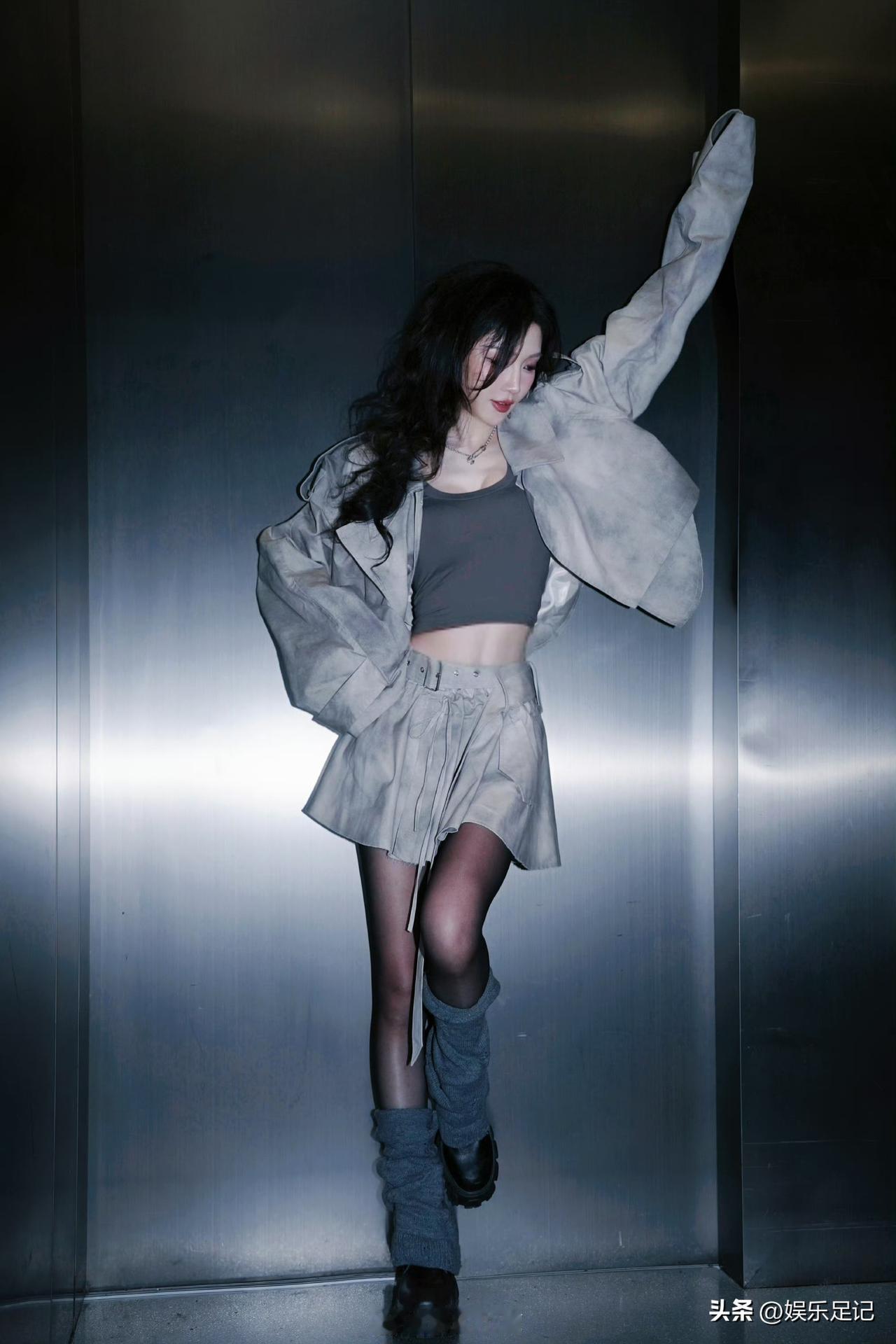 童瑶乘风破浪舞台造型太惊艳!黑色斜露肩亮片裙配同色绑带高跟凉鞋,又美又飒~脚趾涂