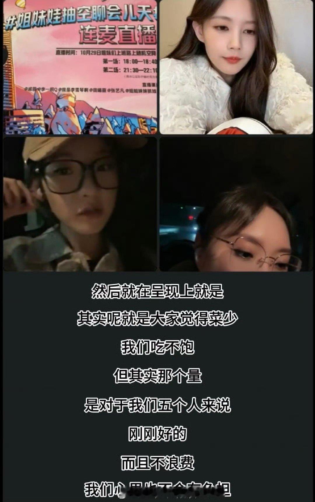 张艺凡辟谣录节目吃不饱睡不暖 张艺凡在线打破“录节目吃不饱”传言!坦言她们5个人点菜从不多点,够吃就好,既不浪费也不会让自己饿肚子,还揭秘镜头里“食物少”是节目效果,这真实又不矫情的态度,好感度直接up!