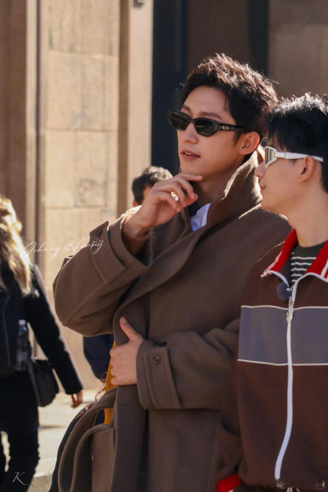 米兰的黄景瑜我狠狠笑纳了 黄景瑜米兰穿黑色皮衣超酷!修身版型显身材,搭配黑色长裤超显腿长,宽肩窄腰气场十足,这造型简直帅到犯规,必须狠狠笑纳!