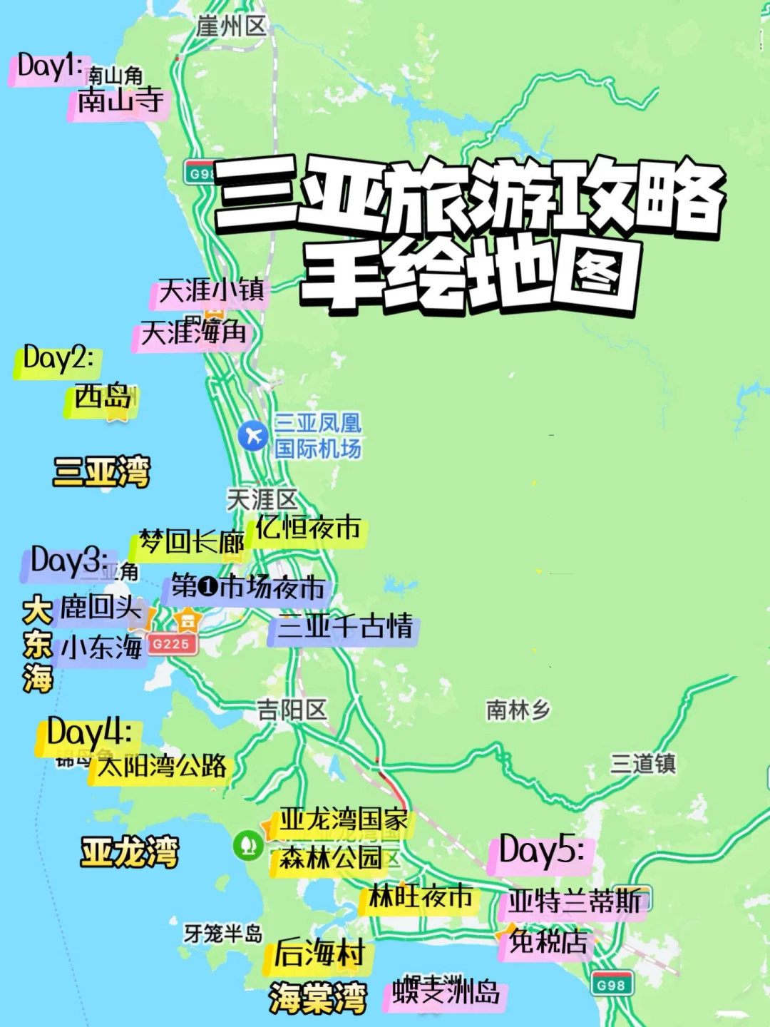 主打来都来了,把三亚所有的景点都玩下来!按照图2进行安排即可!5-7天的时间(图2-图11)