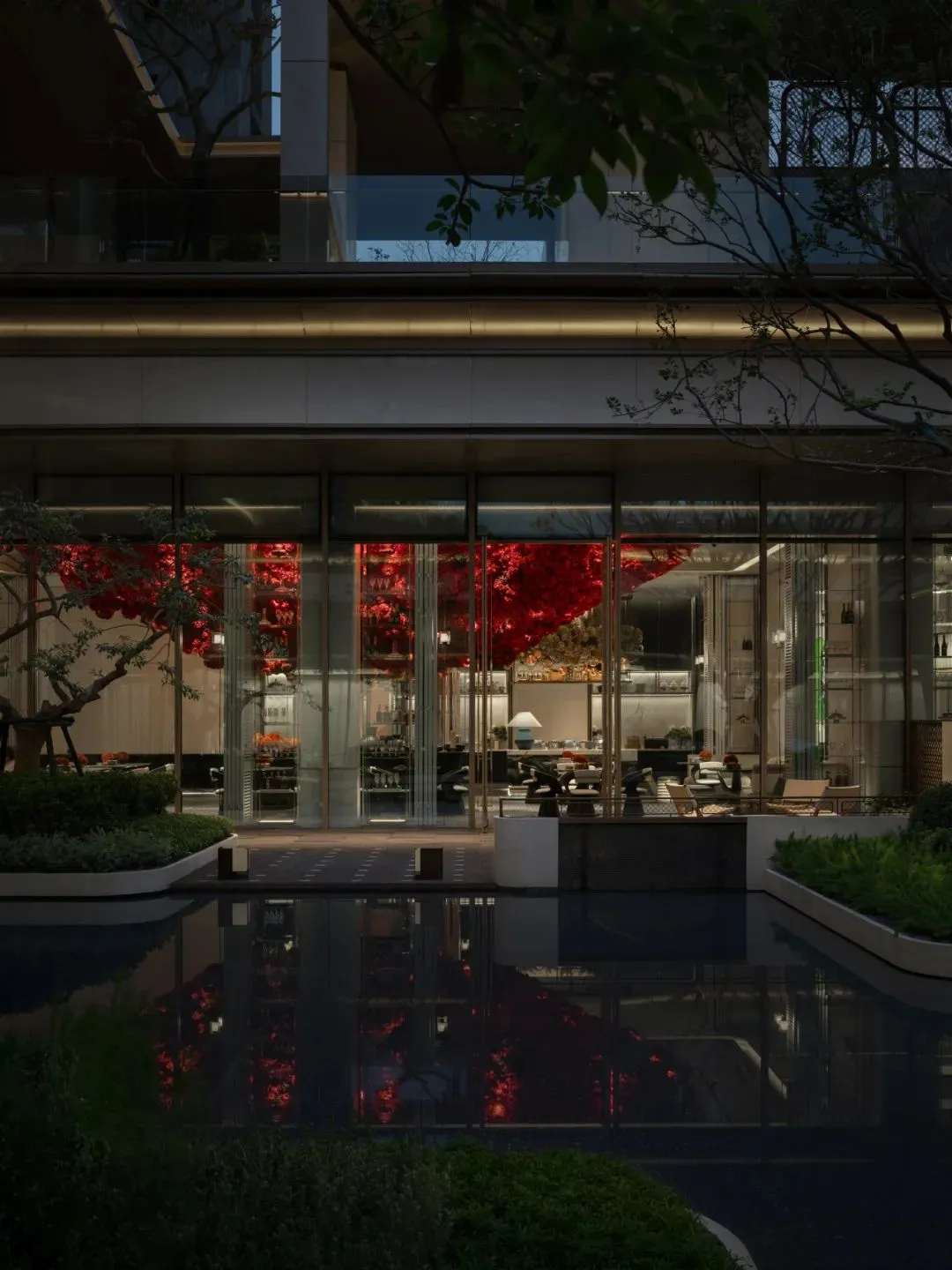 走进负一层JUN CLUB, 围绕琉光水院流动的空间,把文化与艺术揉进热带光影里。
