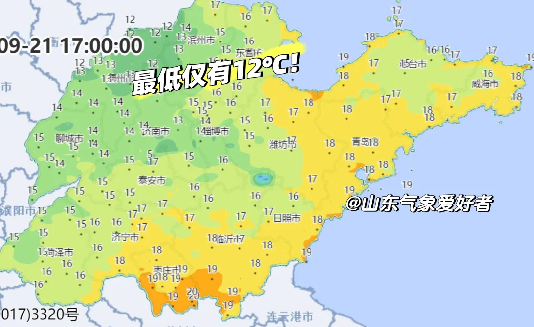 今天白天冷高压继续向南渗透,清晨内陆大部地区气温继续下降,鲁西北、鲁中山区以及菏泽的部分地区最低气温仅有12~14℃,再加上3~5级的偏北风,体感温度较低。
