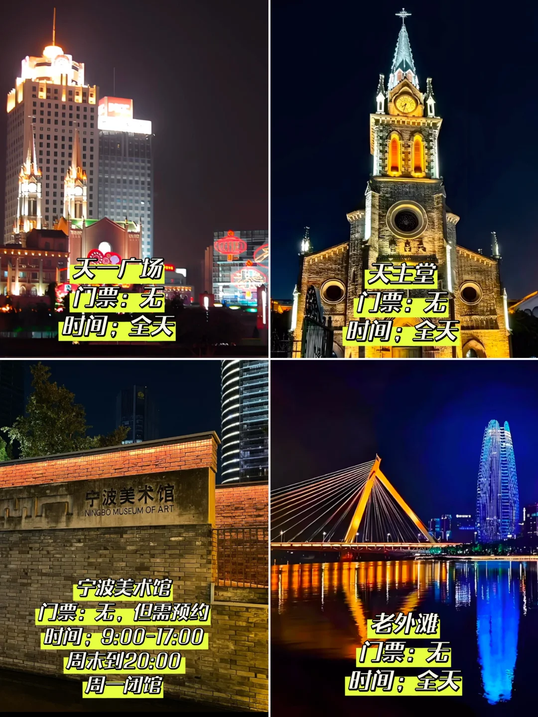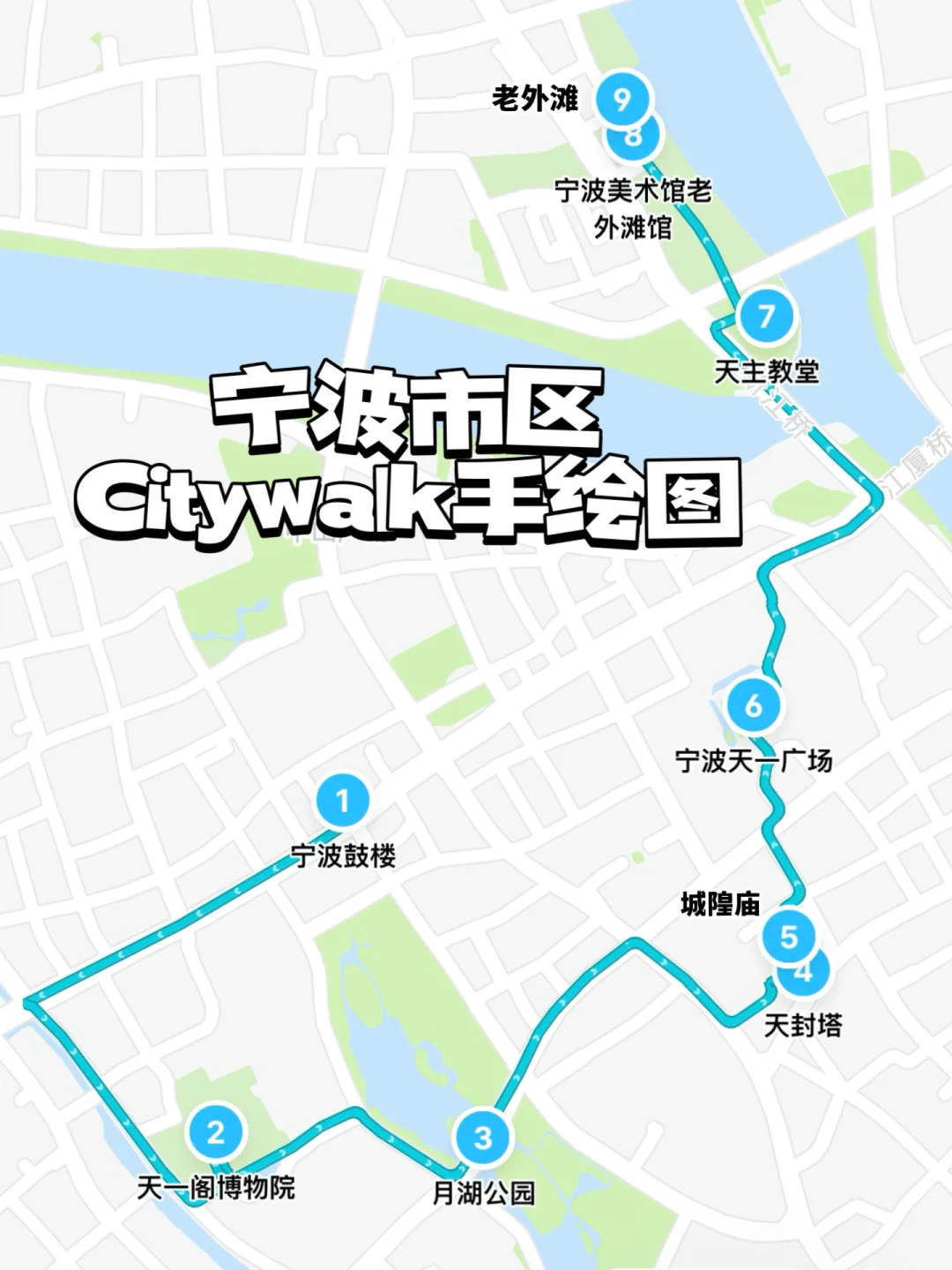 鼓楼➡️天一阁➡️月湖公园➡️天封塔➡️城隍庙➡️天一广场➡️天主堂➡️宁波美术馆➡️老外滩