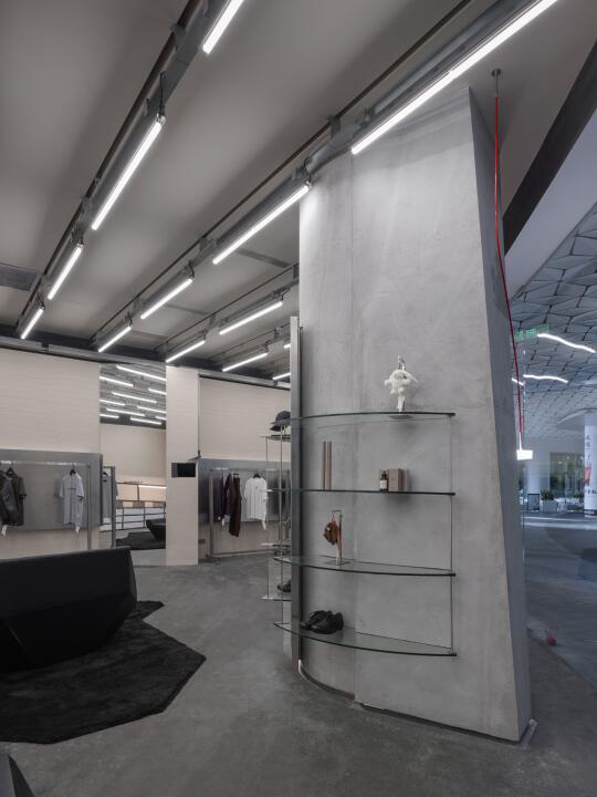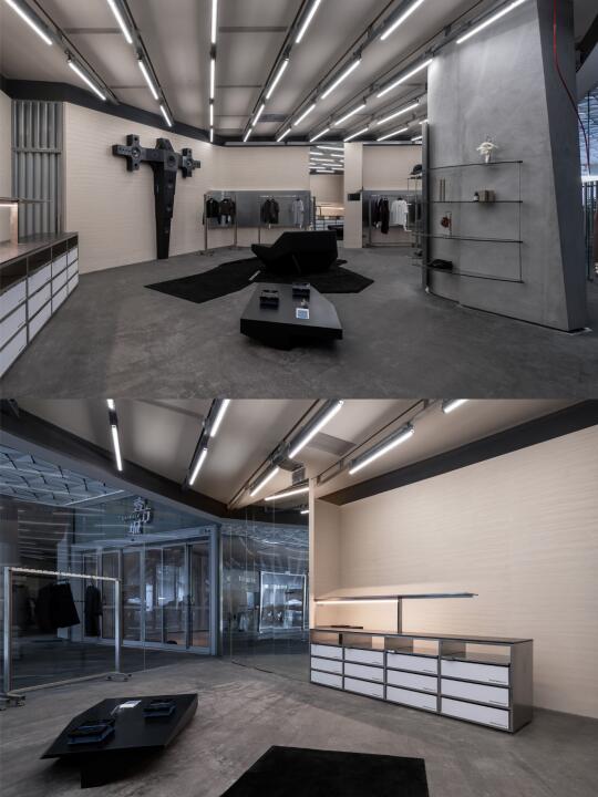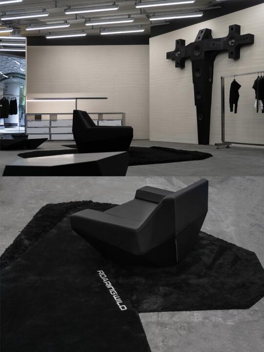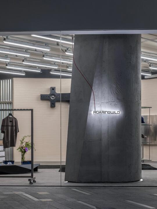 ⬛ 设计团队利用场地特性划分空间尺度,使用建筑元素与材料,设计并植入多样化的艺术装置与家具,以此去呈现空间与品牌的概念。 ⬛ 针对扇形场地布局,靠近圆心的区域被规划为储藏间,两侧边缘分别布置试衣间、展示台、收银台及龙门架,以满足商铺的基本功能需求。 ⬛ 中心区域保持开放,作为灵活的展示空间,用于陈列艺术品、家具和装置,同时兼具休憩、展示和举办活动等多种功能。 ⬛ 项目:ROARINGWILD深圳壹方城 公司:物质组 摄影:樊钊明, 毛伟伟 空间设计 室内设计 设计案例分享 商业空间设计 服装品牌 roaringwild 深圳壹方城 宝安新店 店铺设计 装置艺术