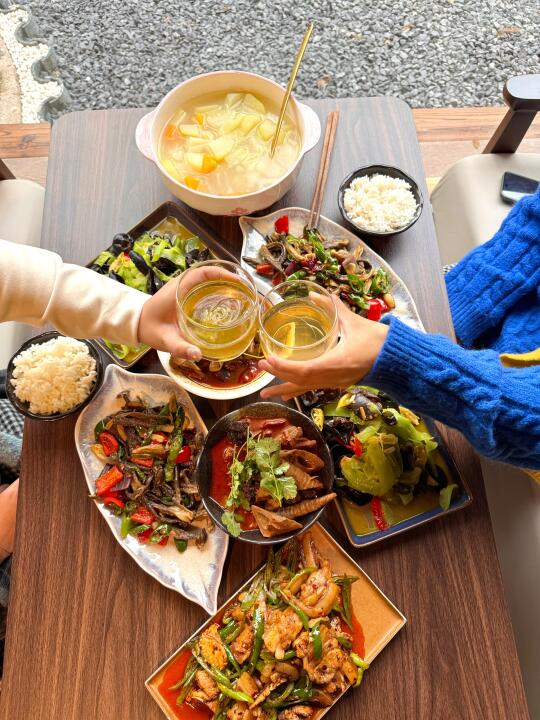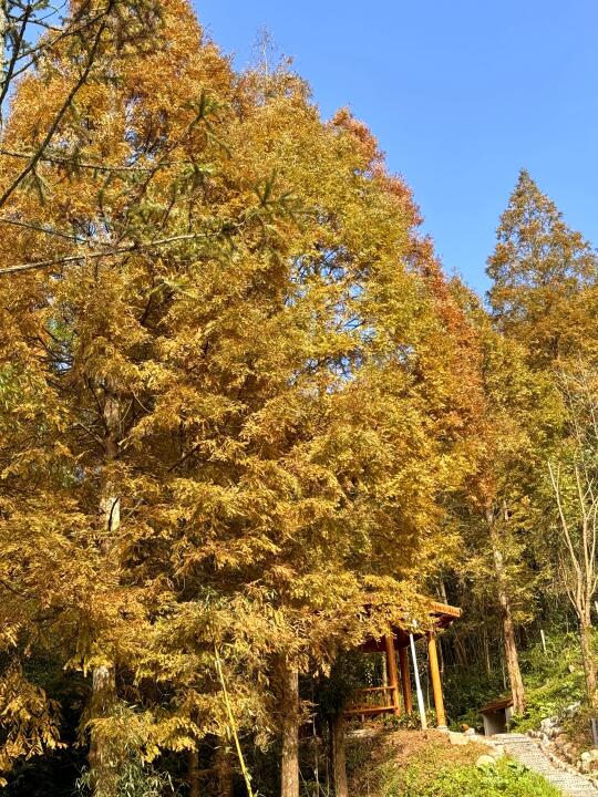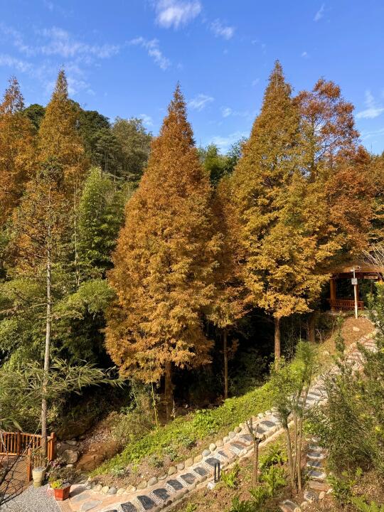 难得一遇的大晴天 远离了城市喧器,和小姐妹一起进山吸氧 一路上看到了竹林、溪流和满山的彩林🍁 真的好chill~