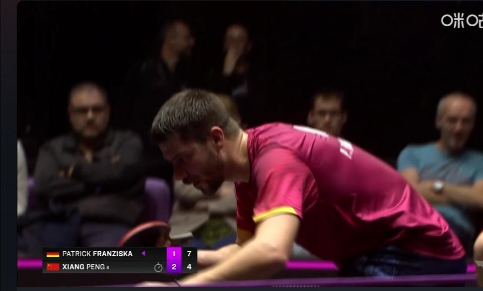 国乒男队三人“小分队”一轮游,全军覆没! 国乒男队在主力王楚钦、林诗栋和梁靖崑退赛后,派出了向鹏、陈垣宇和温瑞博三位更年轻的队员参加WTT法国冠军赛。 出师不利 温瑞博 1:3不敌韩国吴晙成。 陈垣宇 同样地 1:3不敌韩国张禹珍。 整个希望只能寄托在单打世界排名最高、独苗的,向鹏(9)的身上! 然而,冠军赛次日、首轮、1/16决赛,向鹏同样地一轮游! 向鹏2:3(12-10;3-11;11-5;8-11;8-11)输给了德国老将弗朗西斯卡! 国乒男队“小分队”全军覆没!